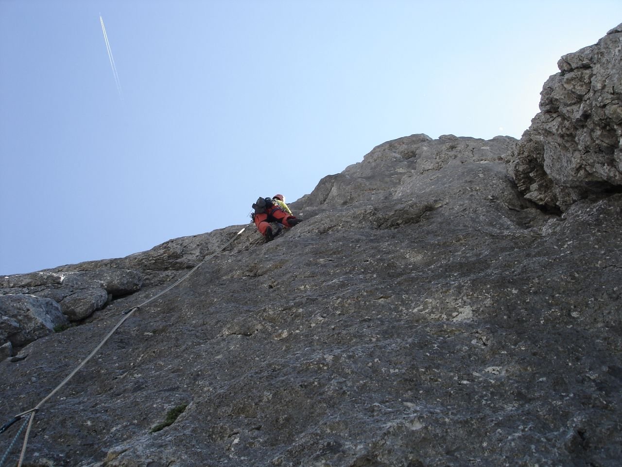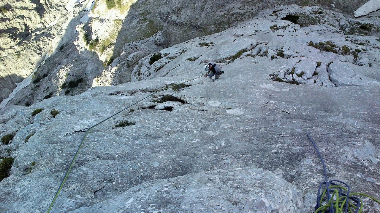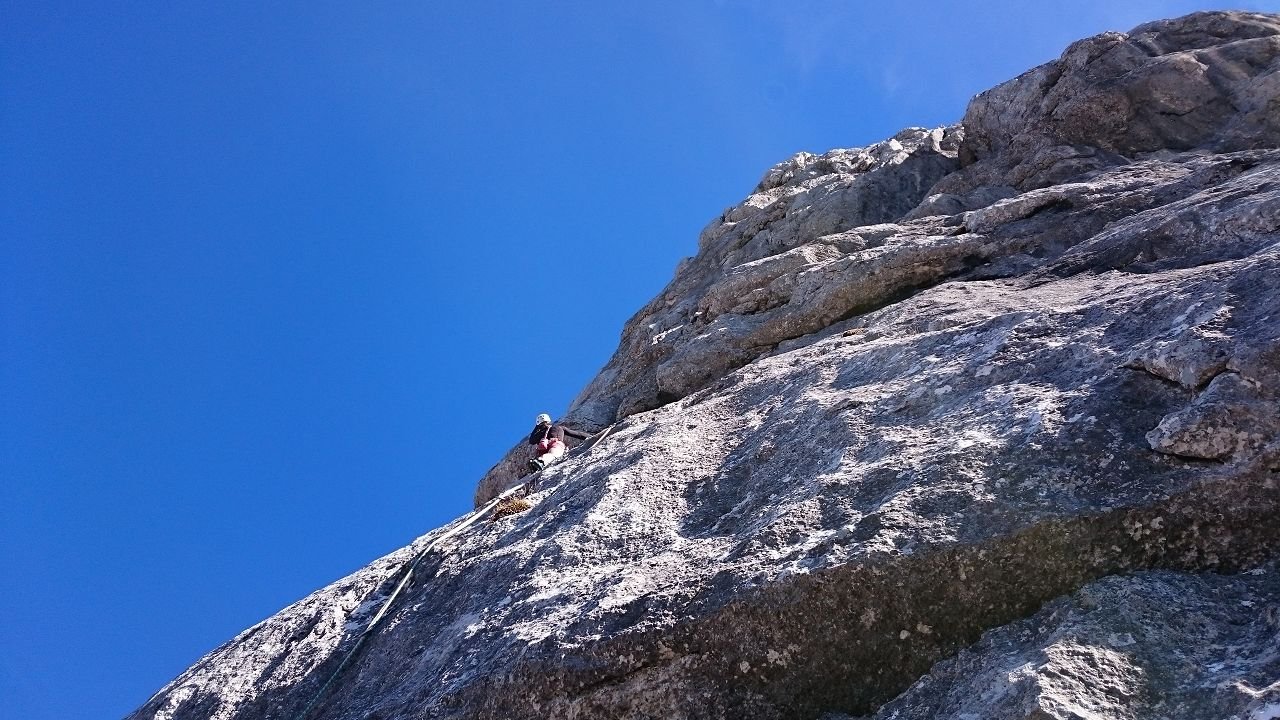 Ausgesprochen schöne Line an der imposanten runden Westkante der Jakobinermütze. Die Kletterei ist sehr abwechslungsreich und bietet schöne Platten, steile Risse, Verschneidungen sowie kleine Überhänge.