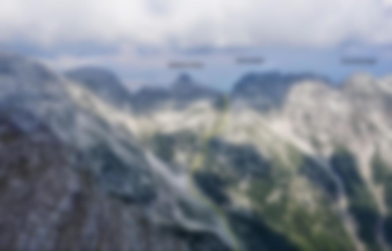 Nun an der gegenüberliegenden Westseite eine Geröllrinne wieder absteigen. Die Wände der Schären erheben sich rechts. Eine Engstelle muss 3m ab geklettert (3-) werden. Auf Höhe 1690 (nicht zu früh!) die Grasbänder nach Süden bis zum Einstieg der Westkante folgen. Im Frühjahr ist auf Altschneefelder zu achten! In Falllinie der Kante, am höchsten Punkt eines markanten Grasrückens, befindet sich der Einstiegsbohrhaken. 30 min. vom Depotplatz.