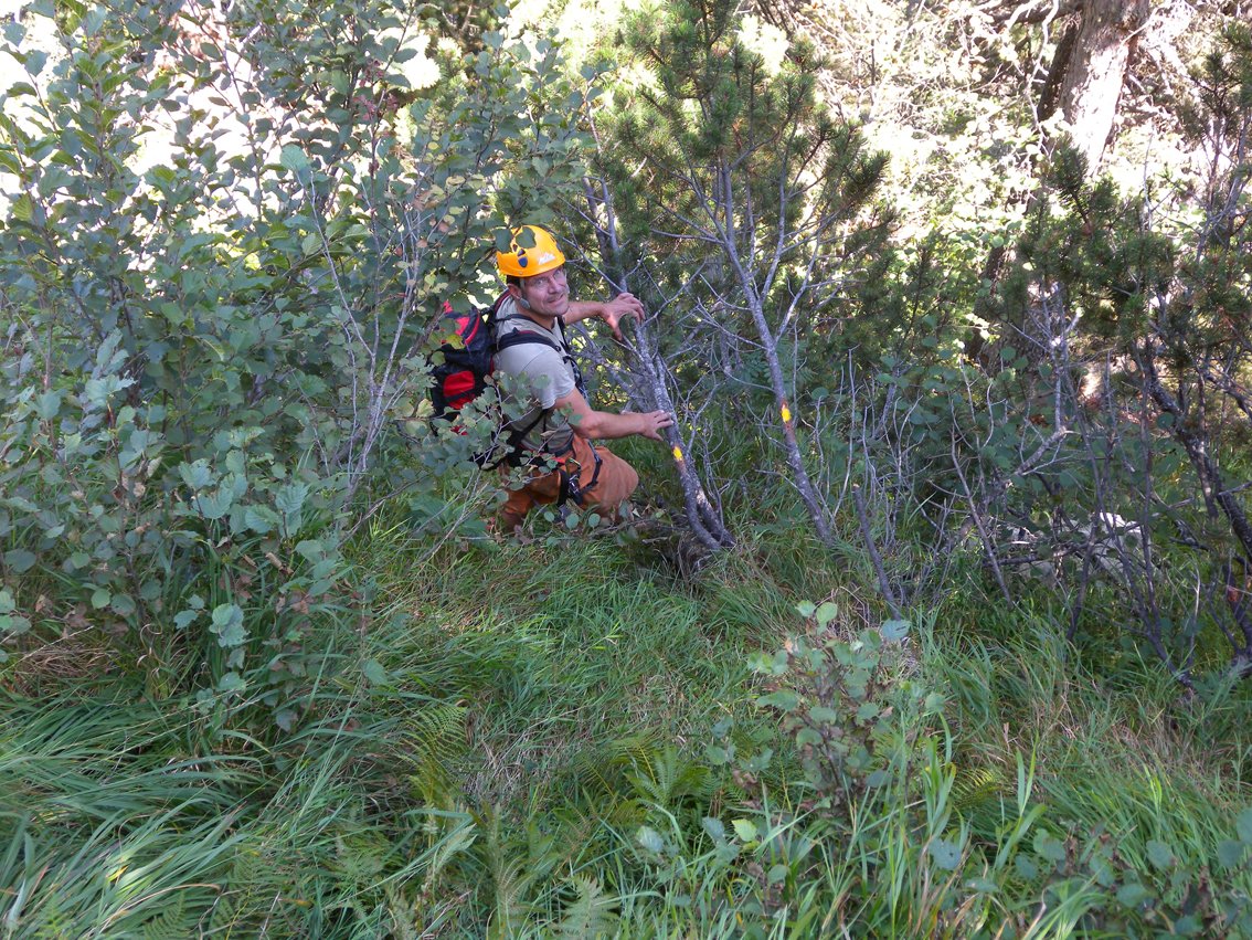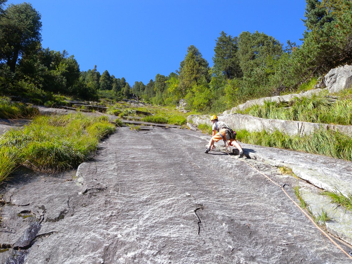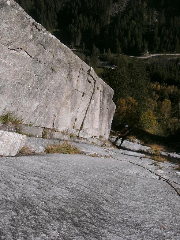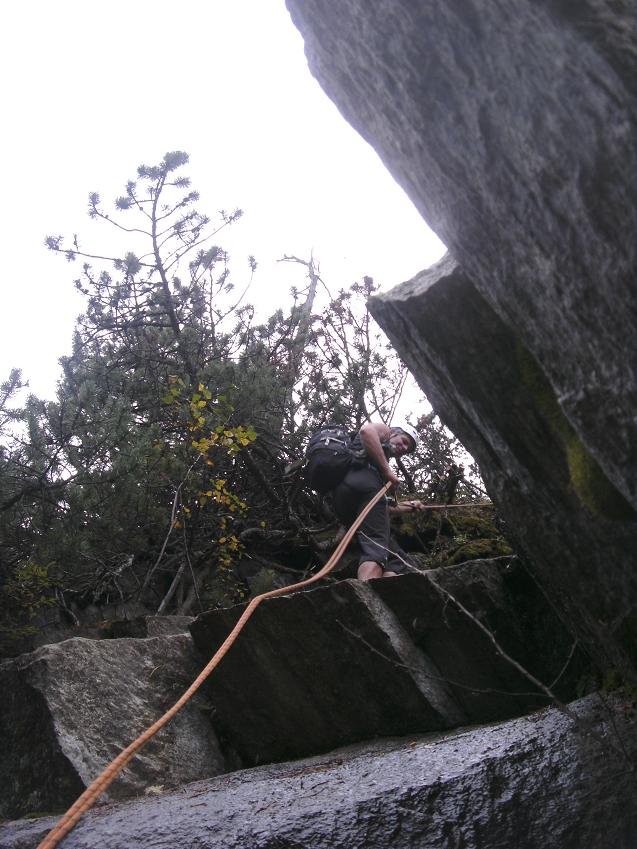 Zur Not kann über die Tour abgeseilt werden, dies sollte man aber nur im äußersten Notfall machen, da einige große Schuppen nicht ganz fest sind!