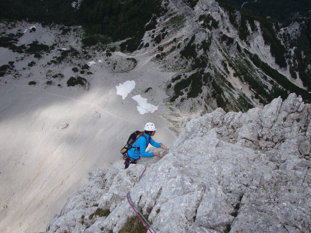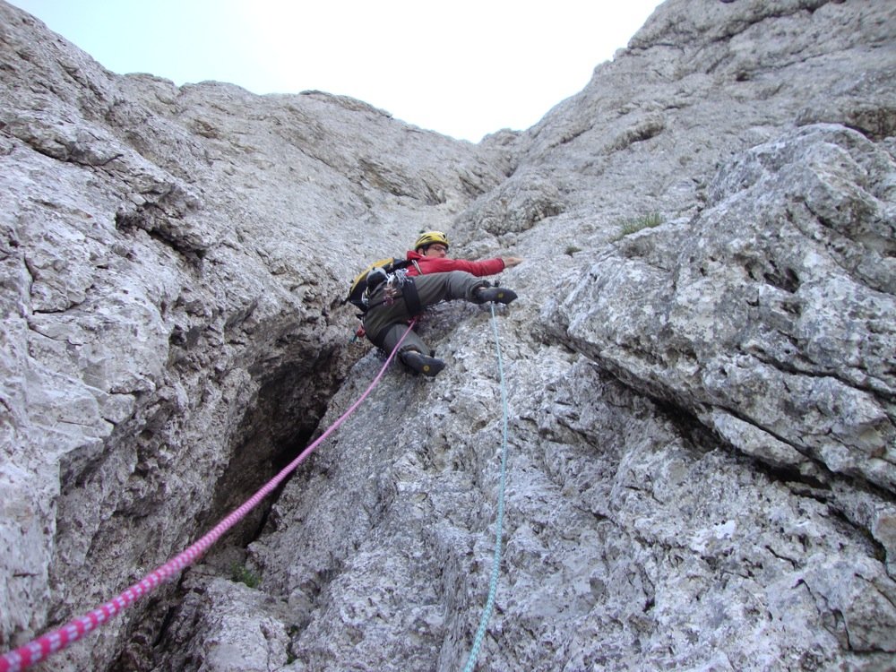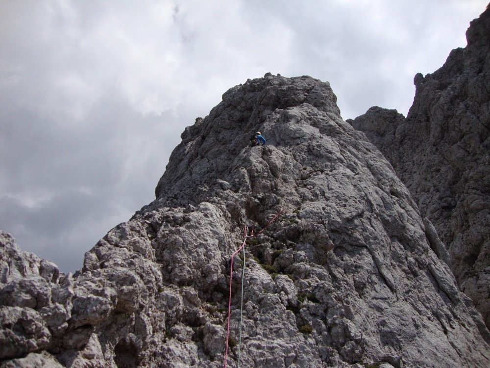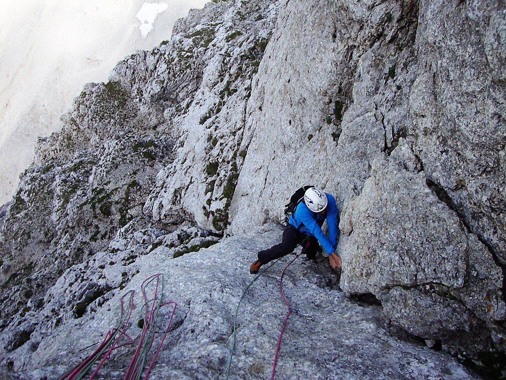 Der Jennyriss ist eine der lohnendsten Touren am Koschutnikturm. Die Route führt im unteren Teil über den Unteren Quergang, danach zweigt sie nach links zu den beiden Risslängen ab. Obwohl die beiden Risslängen "nur" maximal 5+ bewertet sind, sollte man sich dennoch einigermaßen festhalten und den Grad zwingend klettern können. Als moralische Hilfe erweisen sich dabei Cams der Größe 3. Über die Nordkante geht es dann leichter zum Gipfel.