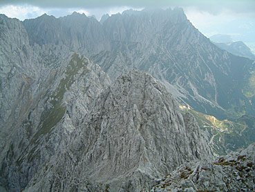 Wandhöhe/Kletterzeit: ca. 600 hm, Kletterlänge wesentlich länger (Grat) Zeiten: Zustieg von Hütte: 40 min., Wand: 3-5 Std., Grat: 1-2 Std., Abstieg: 2 - 3 Std.