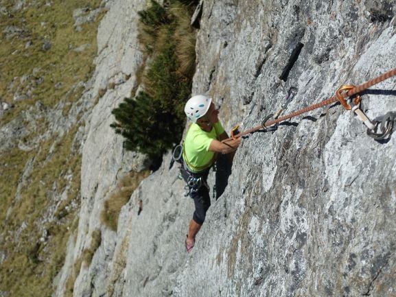 Mit einen 60m Einfachseil über die Tour abseilen.