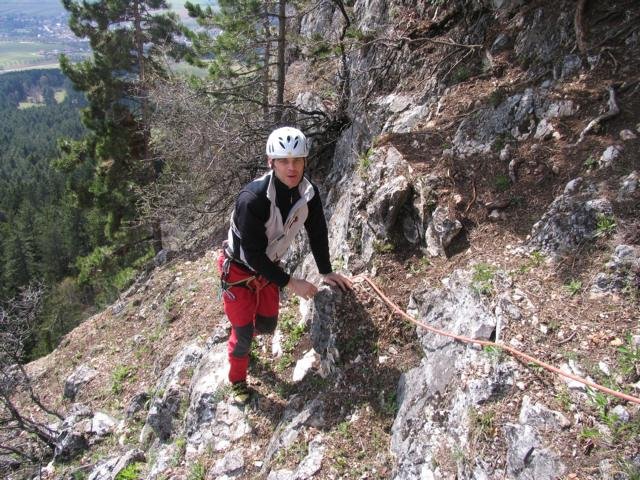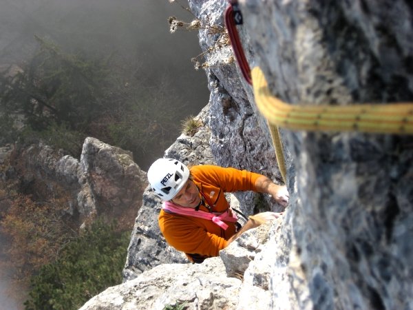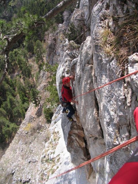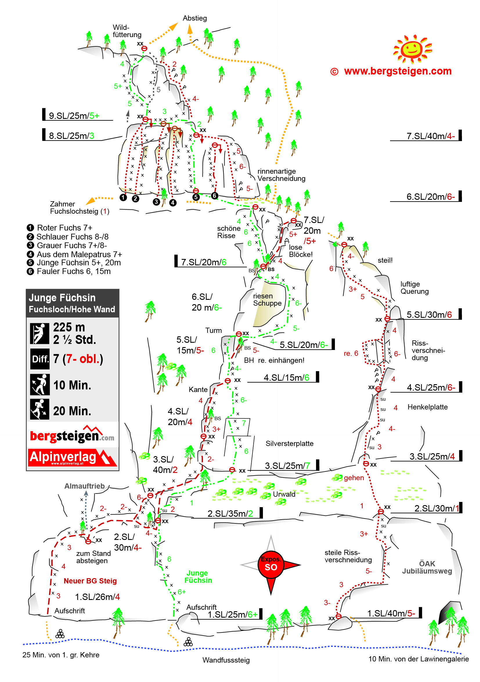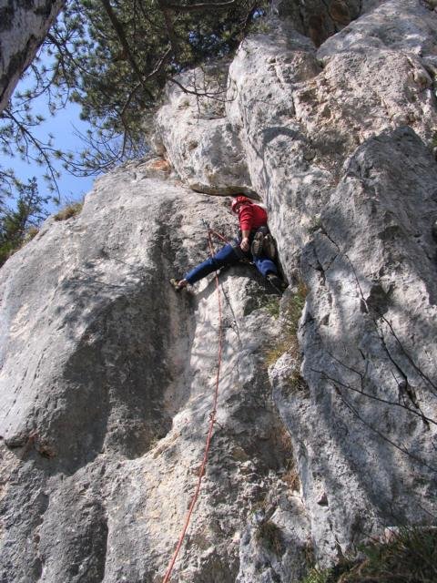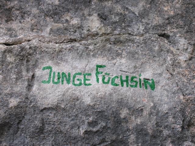 Nicht über den Zahmen Fuchslochsteig zum Einstieg absteigen. Er erfordert unten Kletterrei bis 1 und ist erdig und daher gefährlich.