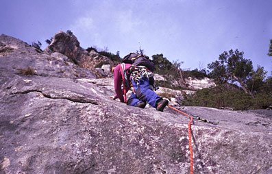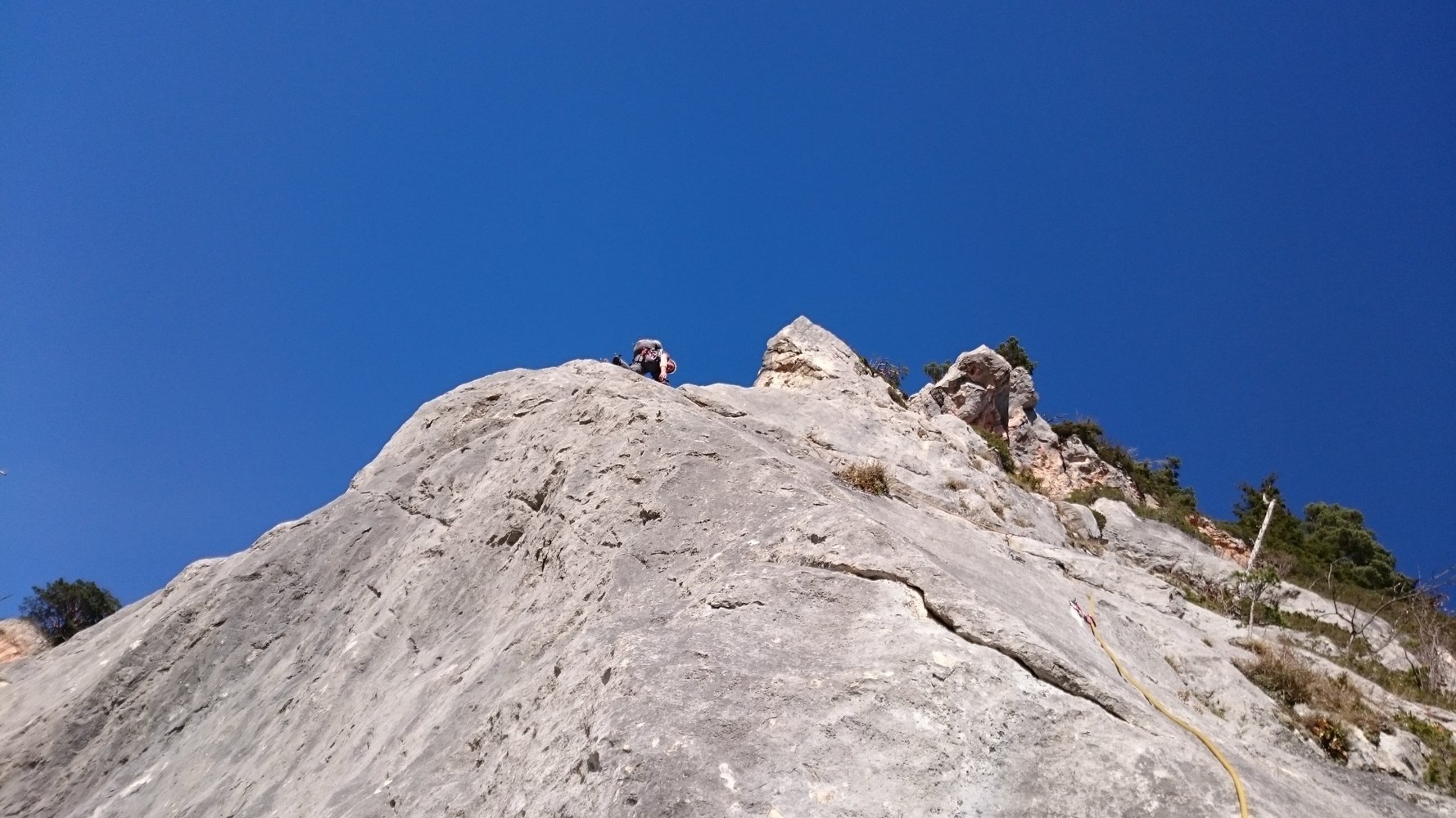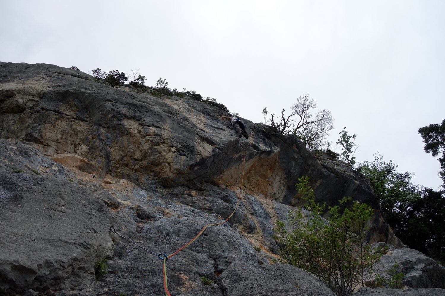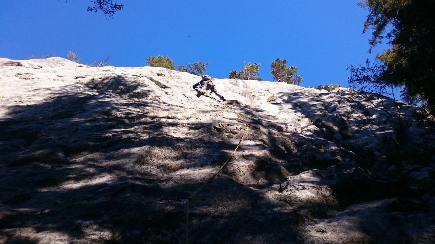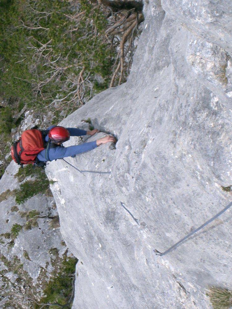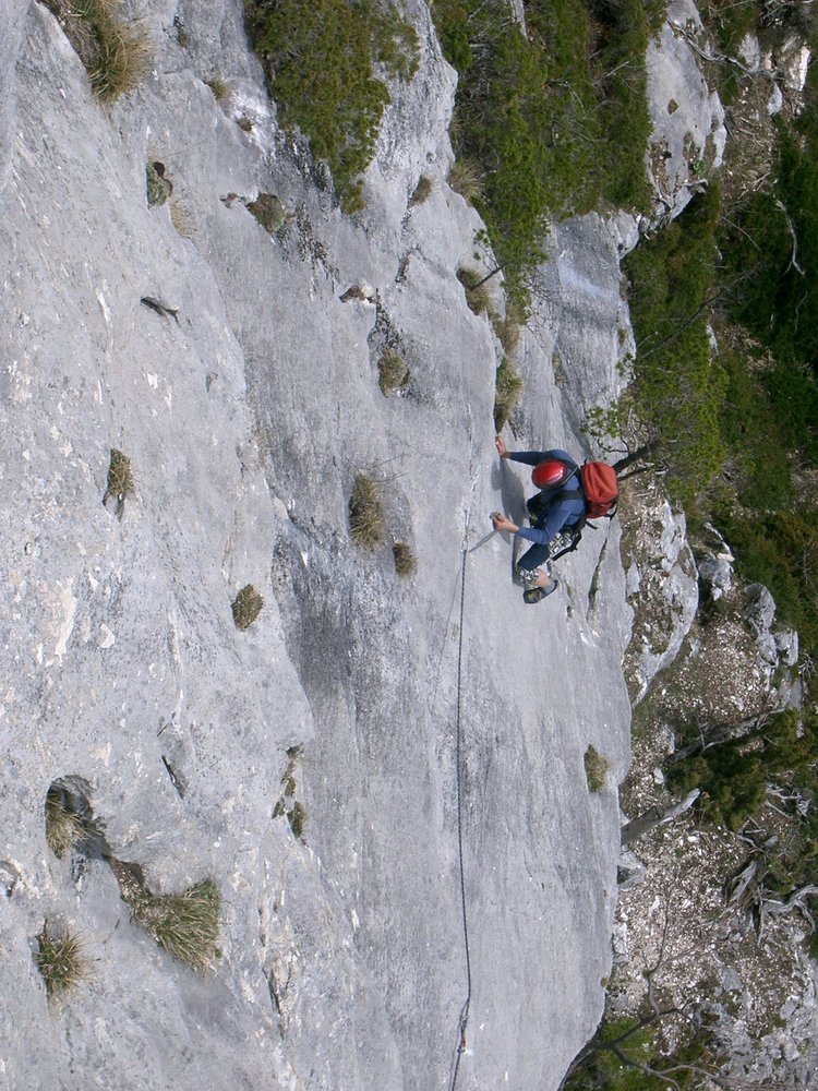 Sehr schöne Pfeilerroute mit südwestlicher Ausrichtung, relativ gut mit BH abgesichert. Die Route ist zwar etwas inhomogen, jedoch entschädigt dafür die 6. Seillänge - ein Muss !! Das Gebiet liegt in einer "Jägerproblematischen-Zone", also bitte ruhig verhalten und wenn möglich bei Einbruch der Dämmerung wieder beim PKW sein.