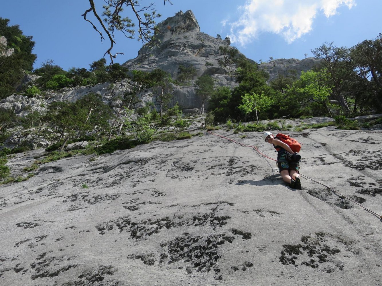 Die Route ist relativ gut mit Haken gesichert, aber keine Plaisirtour!