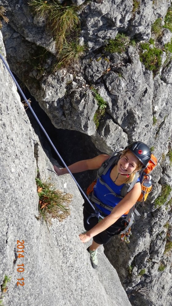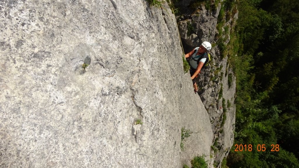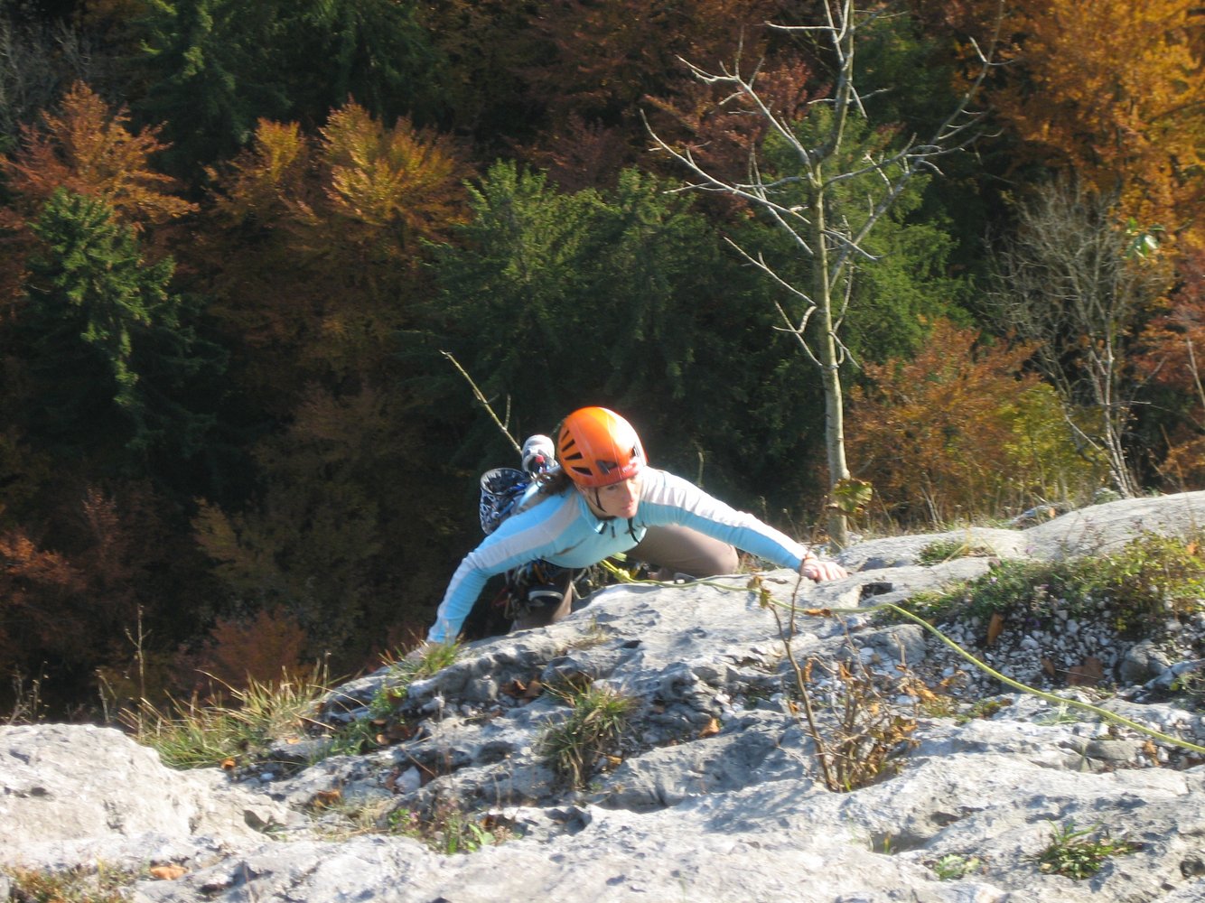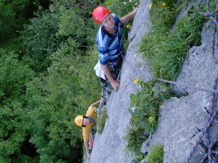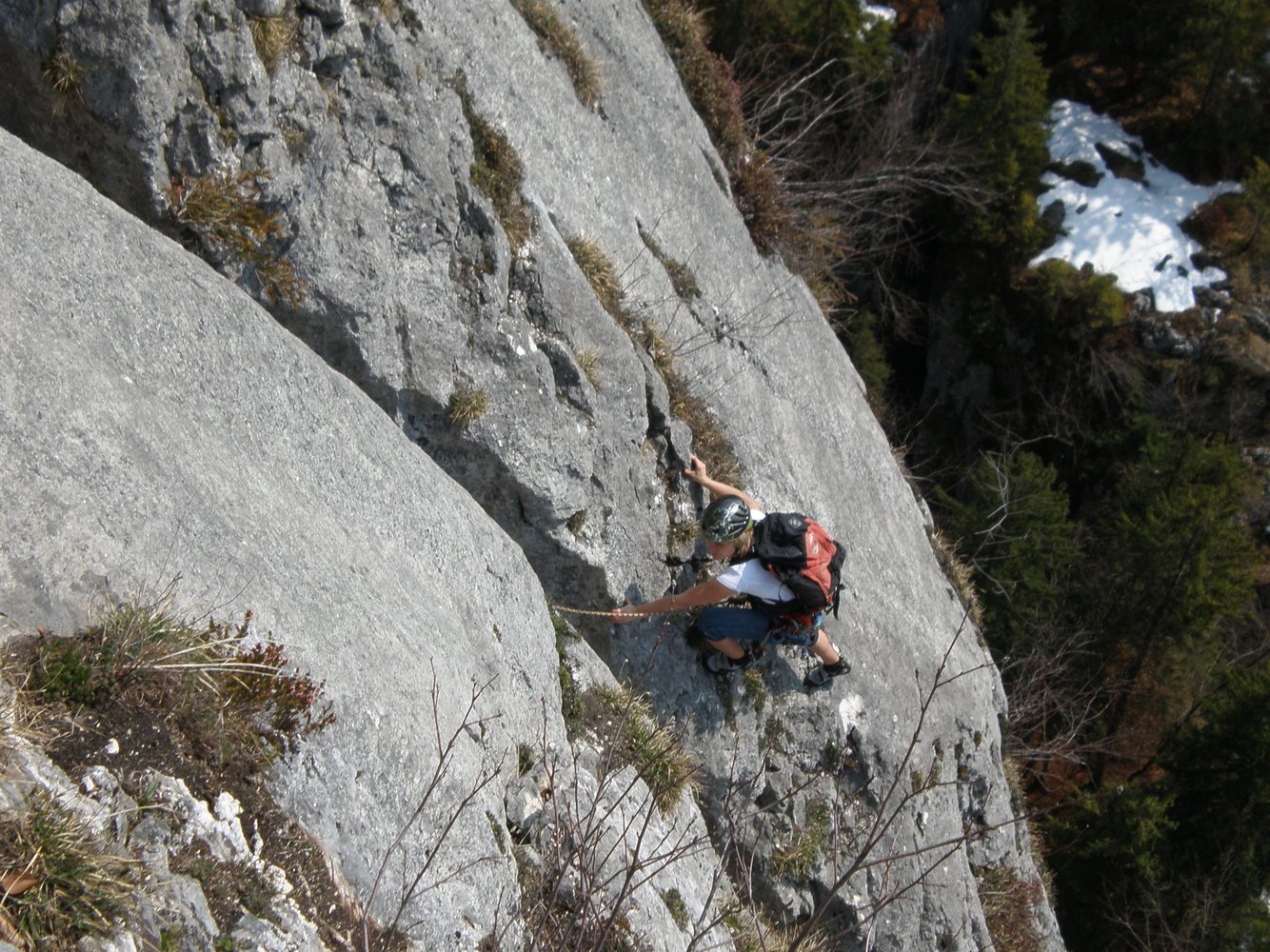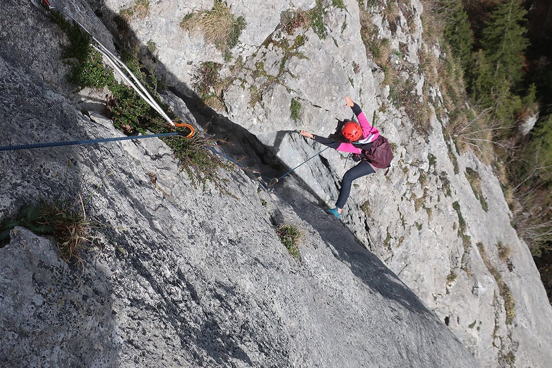 Bei Nässe ist die Route nicht zu empfehlen. Im Bereich der letzten Seillänge auf Steinschlag achten.