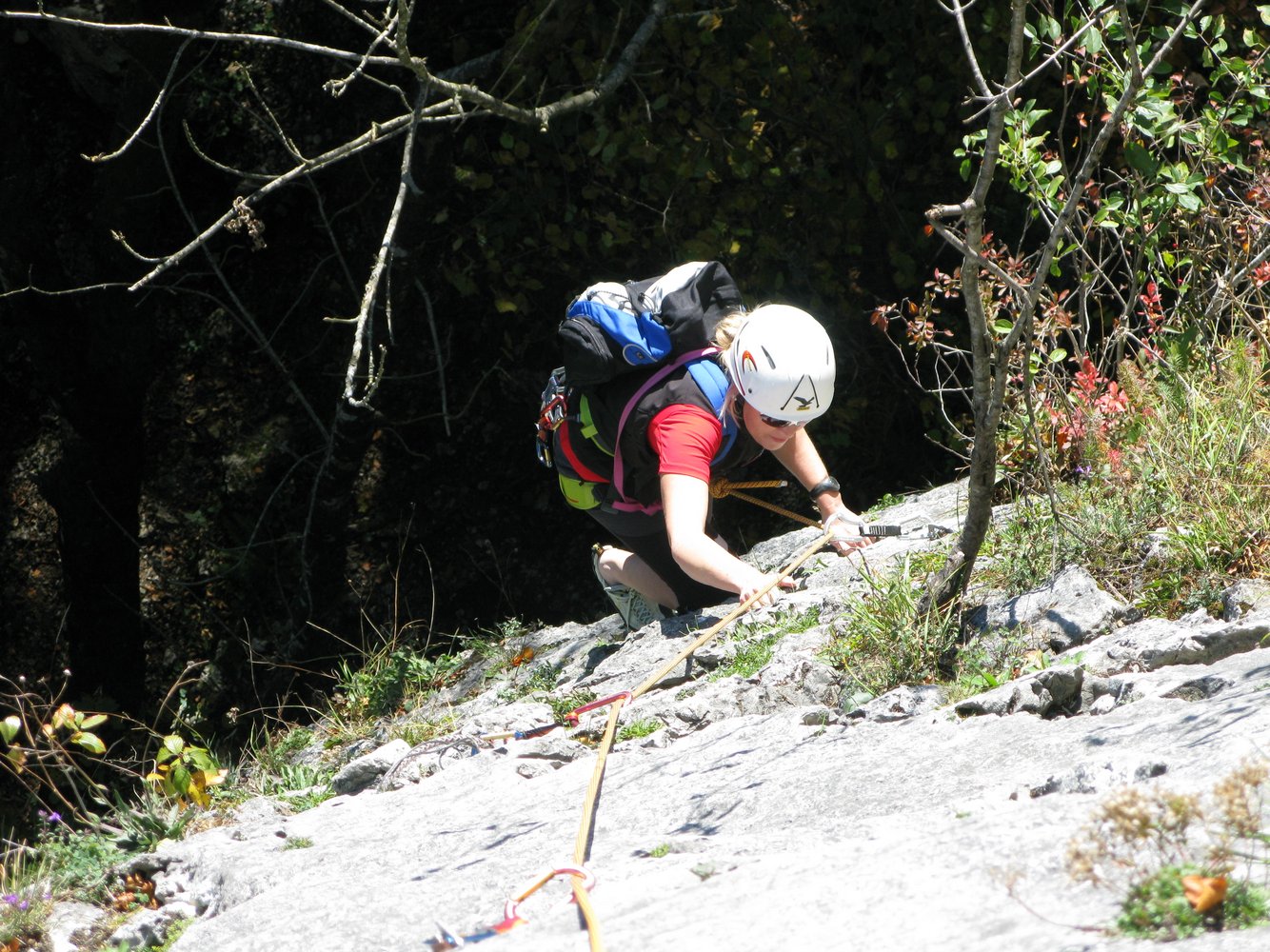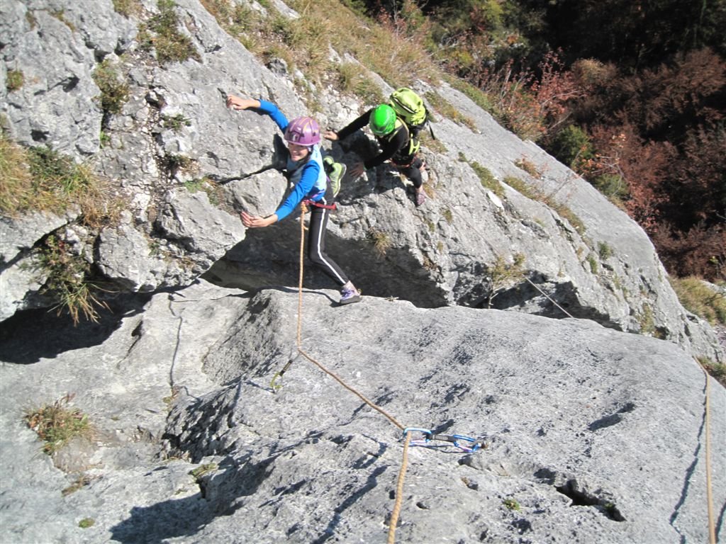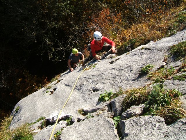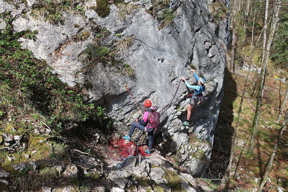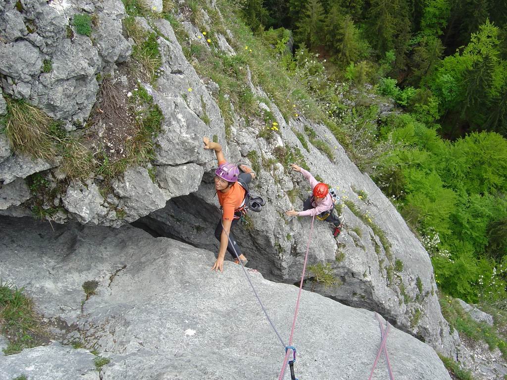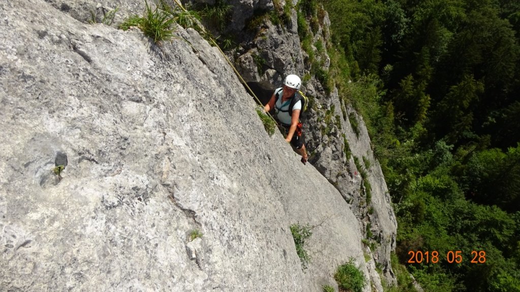 Bei Nässe ist die Route nicht zu empfehlen. Im Bereich der letzten Seillänge auf Steinschlag achten.