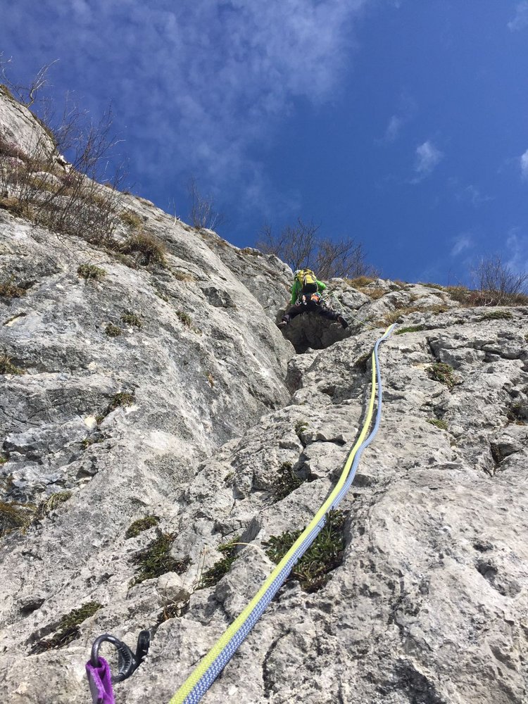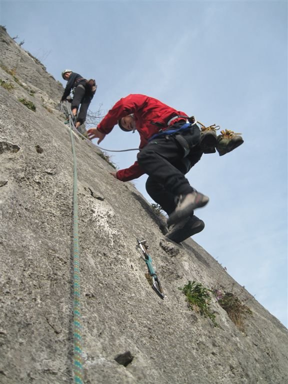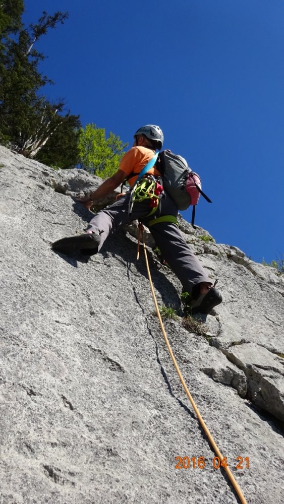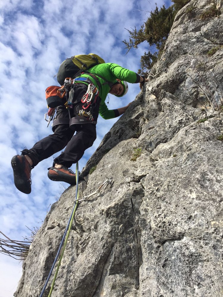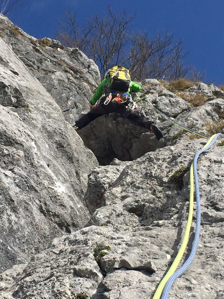 Die Route ist mittlerweile sehr gut mit Bohrhaken abgesichert.