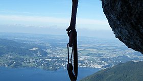 Vom Ausstieg nach rechts (Steigspuren) und dann den Grat nach oben bis zur Naturfreundehütte folgen. Kaffee und Kuchen sind bei sehr zu empfehlen. Abstieg Naturfreundesteig hinunter zum See.