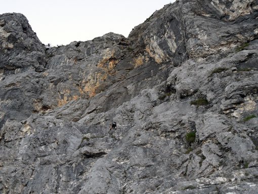 Vom Ausstieg nach rechts (Steigspuren) und dann den Grat nach oben bis zur Naturfreundehütte folgen. Kaffee und Kuchen sind bei sehr zu empfehlen. Abstieg Naturfreundesteig hinunter zum See.