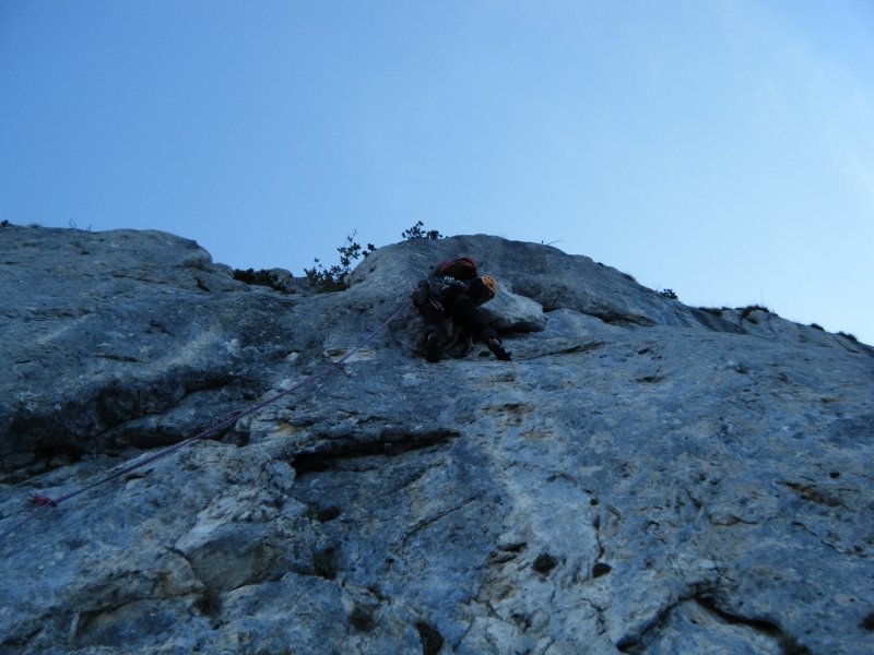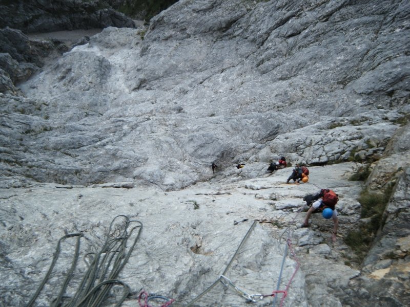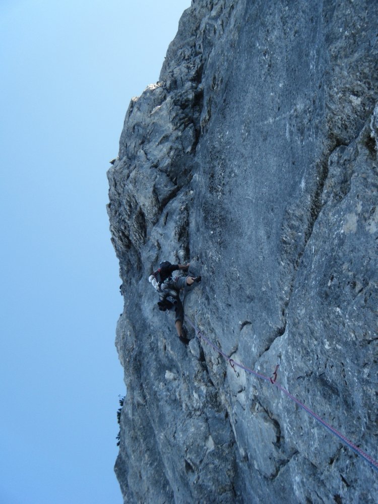 In der ersten sieben Seillängen besteht erhöhte Steinschlaggefahr. Abseilen ist nach der 9ten Seillänge schwierig. Beim Abseilen vom 12ten Stand (= nach der 11ten Seillänge), muss die letzte Zwischensicherung eingehängt werden um an den 10ten Stand zu kommen.