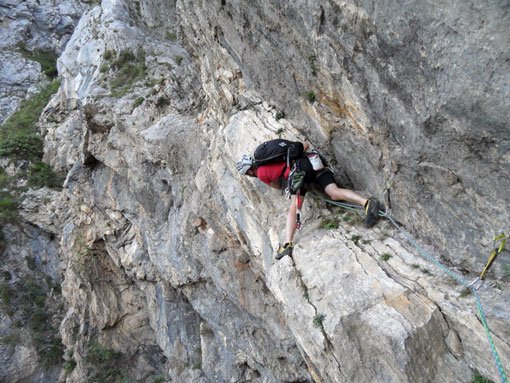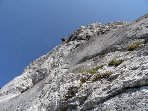 9 Sechser, und 5 Siebener Längen, konstante Schwierigkeiten
