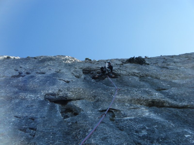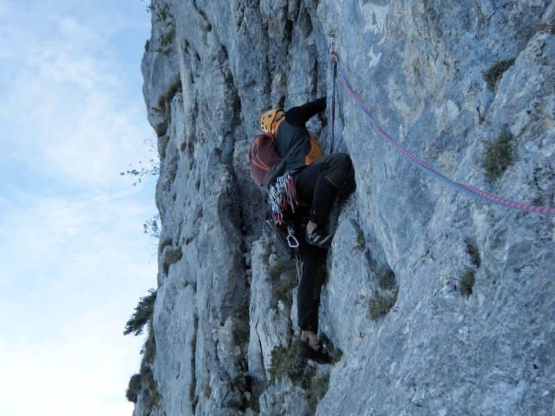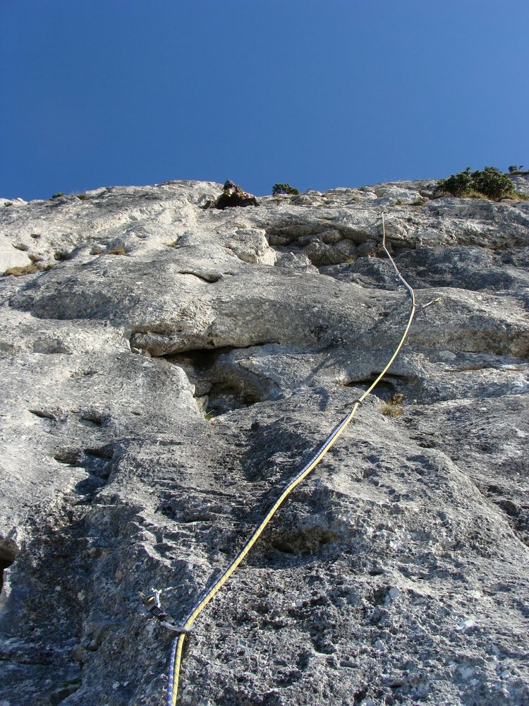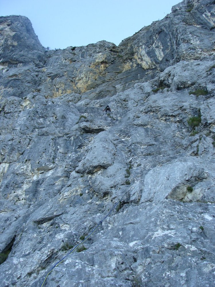 Eine gewaltige Tour durch die Westwand vom Taunstein. 900 Meter Wandhöhe und 1100 Klettermeter machen die Tour zu einer echten Kondischlacht. Der Zustieg geht über eine Schlucht und der Beginn ist mit ein paar 5er Längen recht moderat. Aber dann geht es zur Sache. 9 Sechser, und 5 Siebener Längen fordern schon. Vor allem sind die Längen nicht unterbewertet und teilweise konstante Schwierigkeiten. Also keine Einzelzug Geschichte. Eine freie Begehung ist mit 7+ eher unterbewertet da auch ein paar Griffe und Tritte echt ausgecheckt werden müssten um das Ding komplett frei zu gehen. Die Wegfindung ist in Summe einfach und die Tour ist sehr gut eingebohrt. Landschaftlich herrlich. Nach den 30ig Seillängen kann man Kaffee und Kuchen im Naturfreunde echt empfehlen.