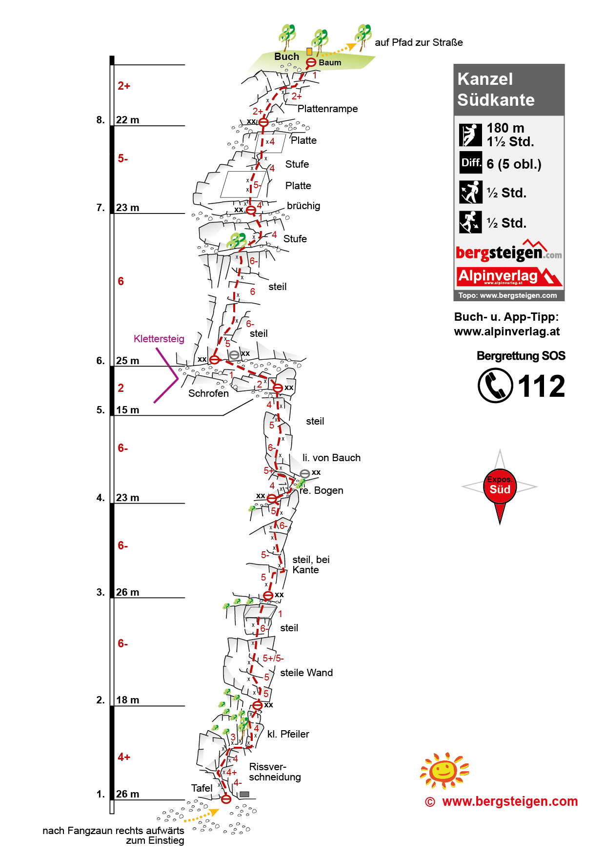 Siehe Topo - ab der zweiten Seillänge wird die Tour steiler.