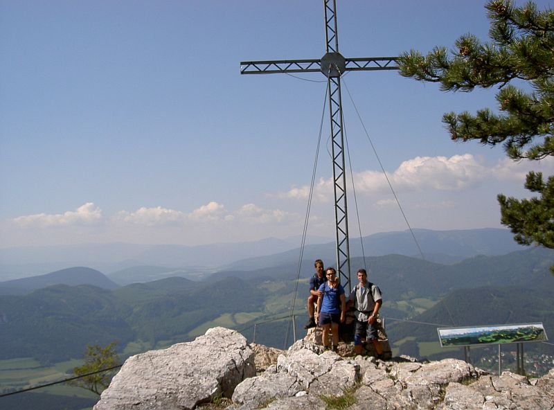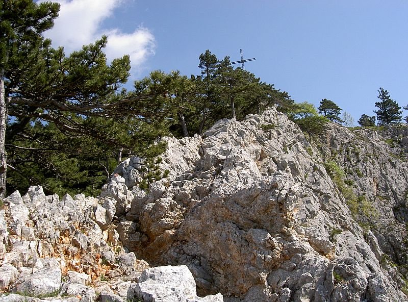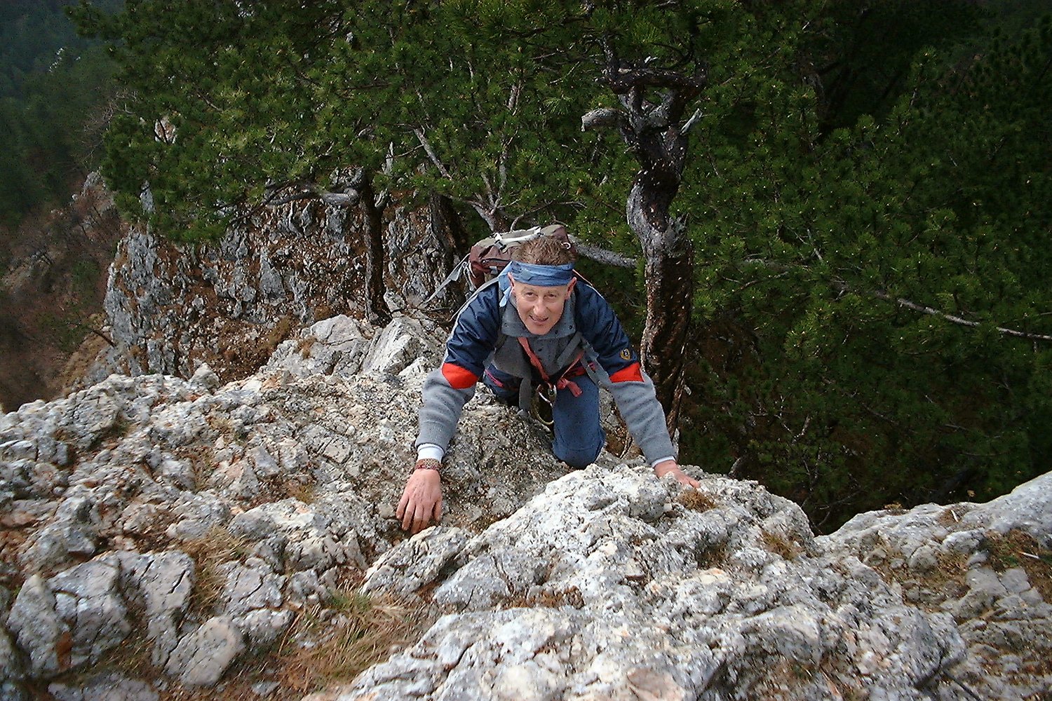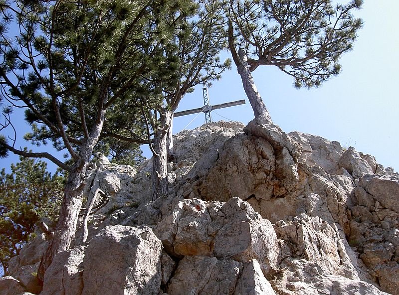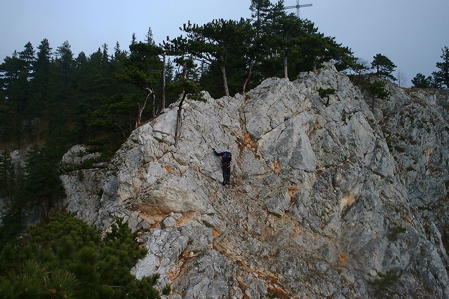 Oft begangene, lohnende Kletterei. Es geht zuerst im unteren Teil durch eine steinschlaggefährdete Rinne mit der Schlüsselstelle (kurzes Wandl), dann folgt Gehgelände im Mittelteil und ein wunderbarer Abschluss über den Kanzelgrat. Die Tour hat durchwegs festen Fels und bietet oben einen wunderbaren Schneebergblick. Sehr zu empfehlen.