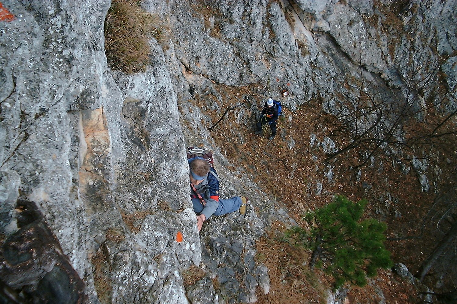 Die letzten beiden Seillängen des Technikersteiges wurden 2006 von Peter Heihs saniert.
