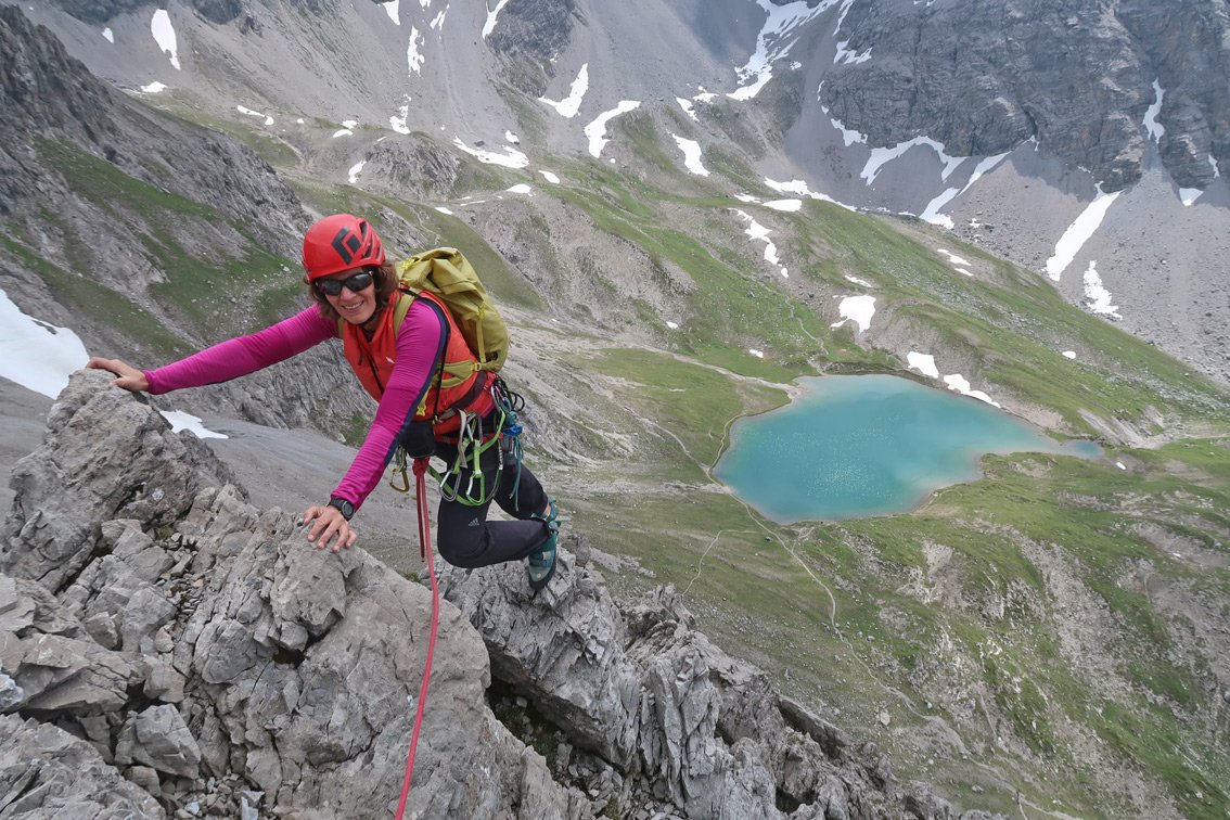 2 x 60 m Doppelseil, Kletterausrüstung und Helm. Klemmkeile können nur bedingt angebracht werden.