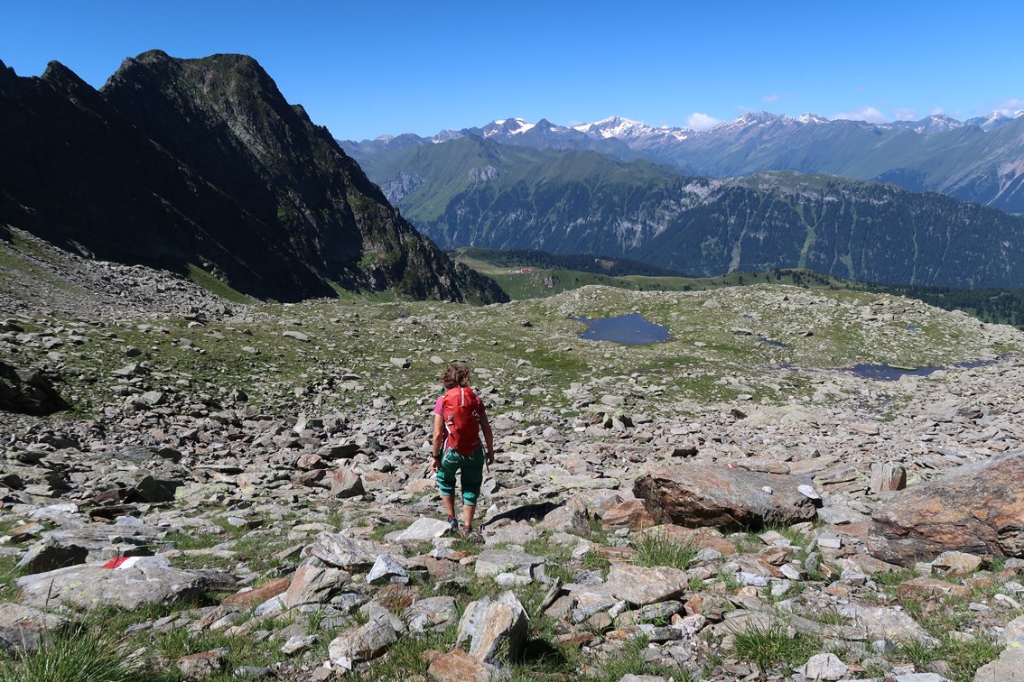 Vom Gipfel auf dem Normalweg 12b (markiert, anfangs etwas steiler) zurück ins Kar und von dort wie beim Zustieg retour zum Jaufenhaus.