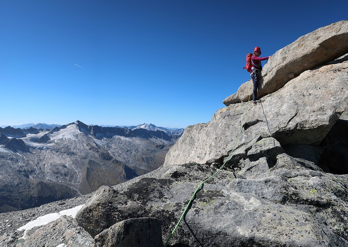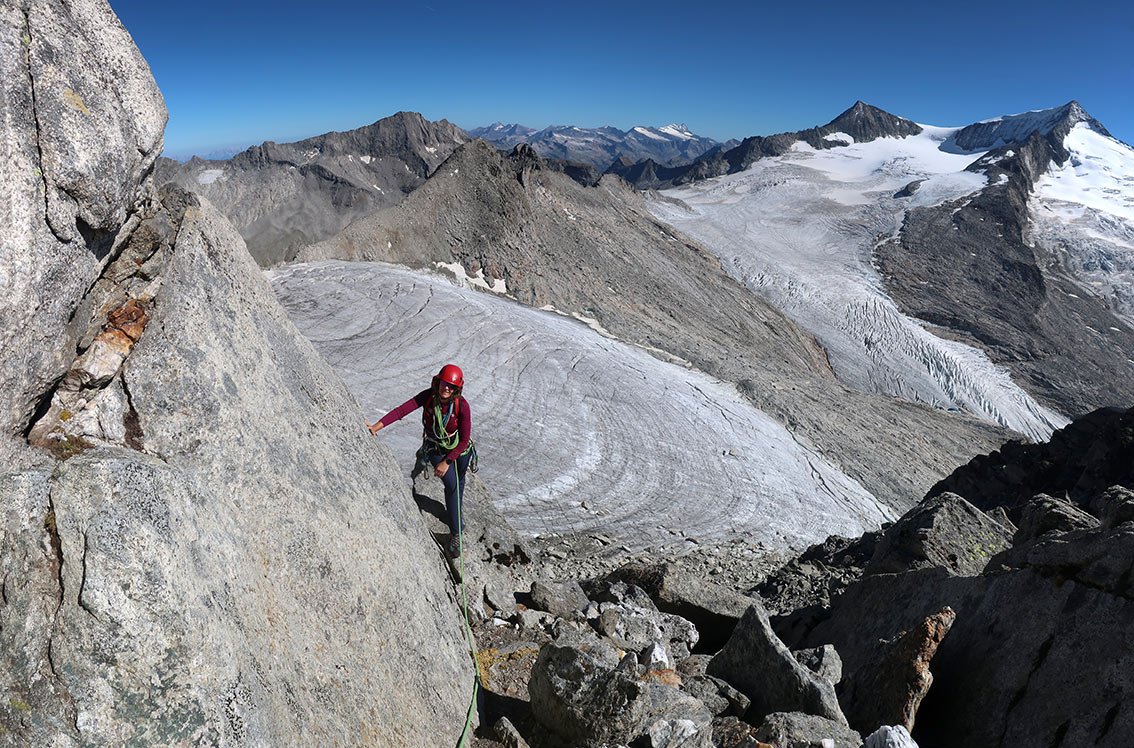 Der Südgrat auf den Keeskogel ist ein beliebter, einfacher Gratanstieg auf den Hausberg der Kürsinger Hütte. Erfahrene Bergsteiger klettern den Grat am laufenden Seil oder seilfrei. Wer die Turmvariante in der Mitte mit nimmt, muss aber etwas fester zupacken. Dieser Grat hat also sowohl für den Bergsteiger, welcher längere Touren liebt, als auch für den Kletterer etwas zu bieten. Over the top hat man aber immer ein perfektes Panorama direkt auf den Großvenediger!