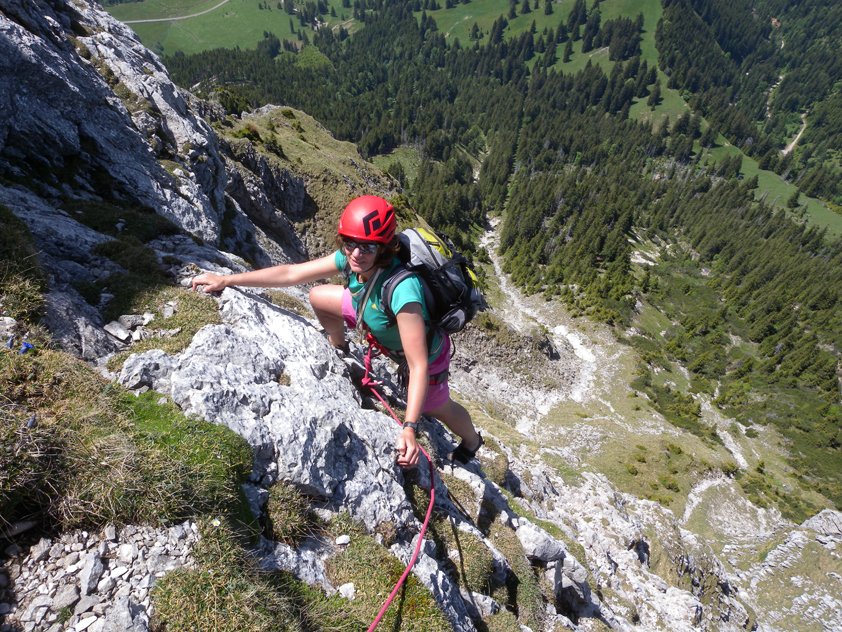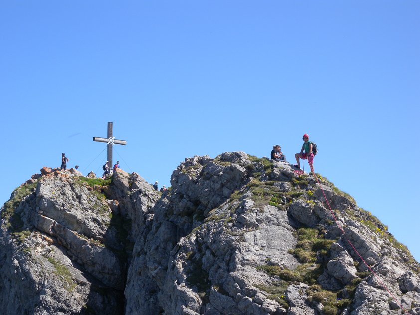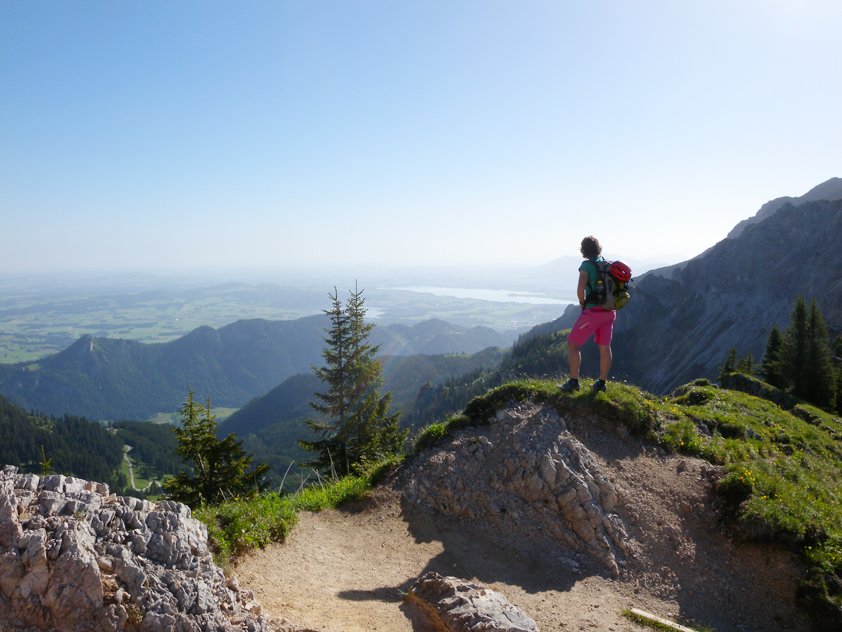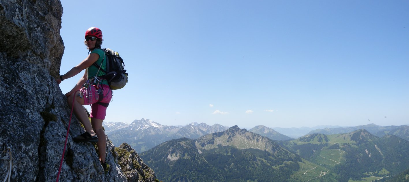 Gute und leichte Klettertour an der Nordwestseite des Aggensteins. Der Grat gehört zu den längeren Genusstouren am Aggenstein und wird auch gerne in Verbindung mit anderen leichten Touren gemacht. Vom Gipfel perfekter Blick in die Ebene mit den Füssener Seen und die oft schneebedeckten Gipfel der Alpen - landschaftlich einmalig!
