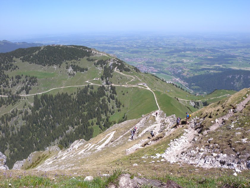 Man kann auch von Pfronten mit der Bergbahn (Vierer-Sesselbahn Hochalpe) hinauf fahren, dann dauert der Zustieg nur ca. 35 Min.