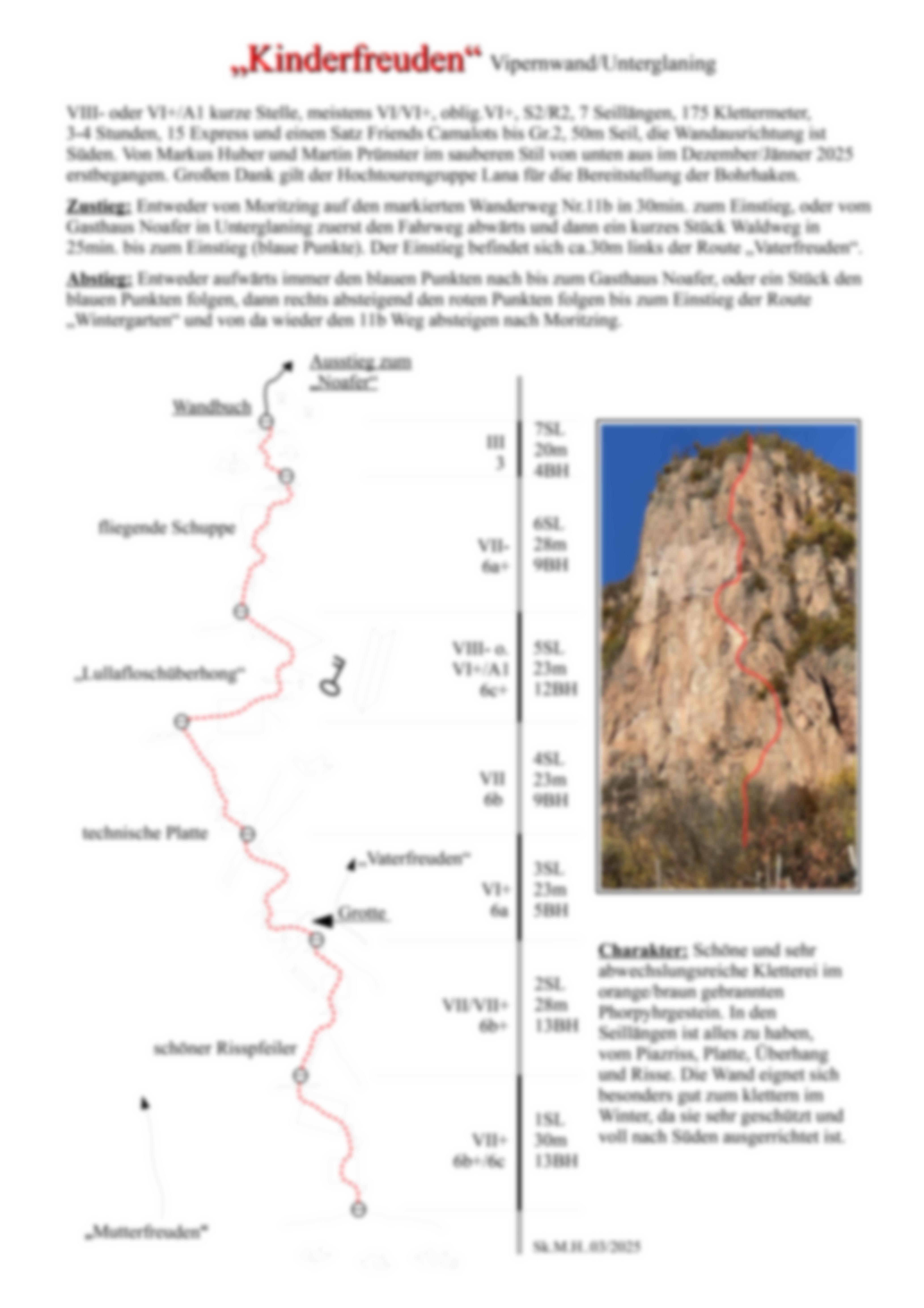 Von Markus Huber und Martin Prünster im sauberen Stil von unten aus im Dezember/Jänner 2025 erstbegangen.