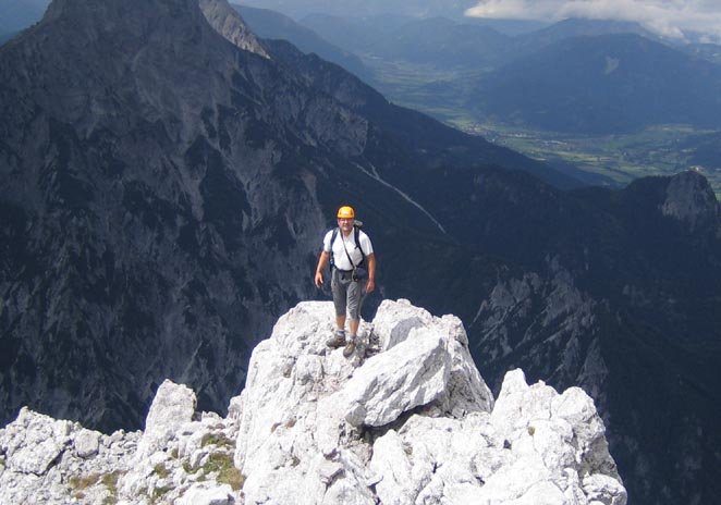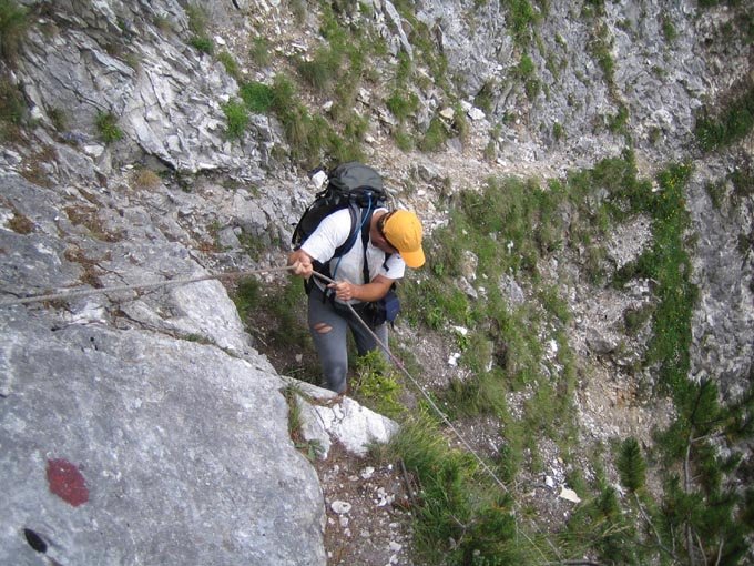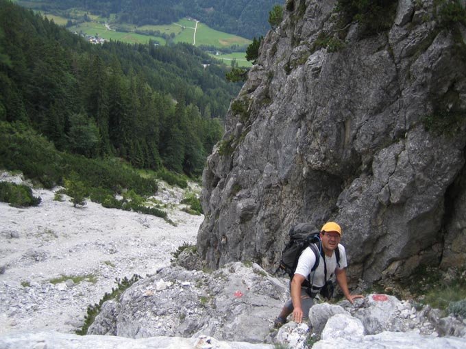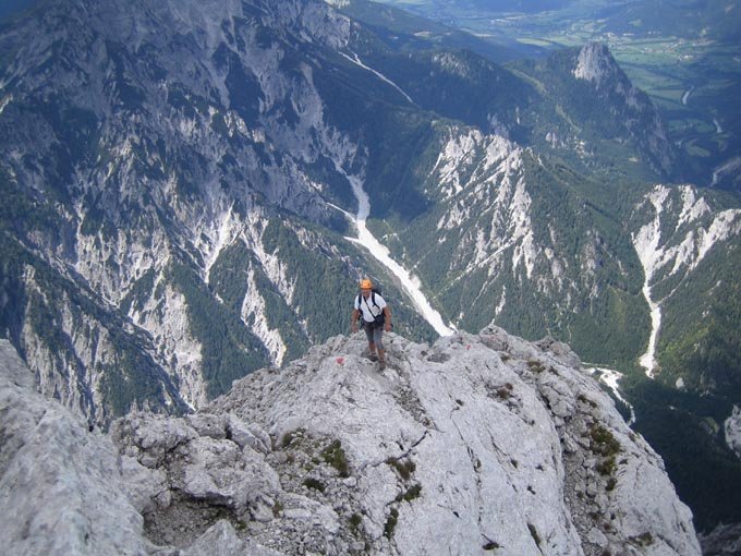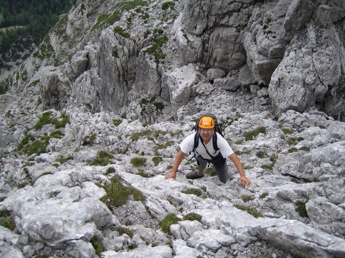 Große alpine Bergfahrt. Nur für trittsichere und konditionstarke Bergsteiger. Bei Nässe extrem gefährlich!!!!, d.h. nur bei sehr sicheren Wetter einsteigen!