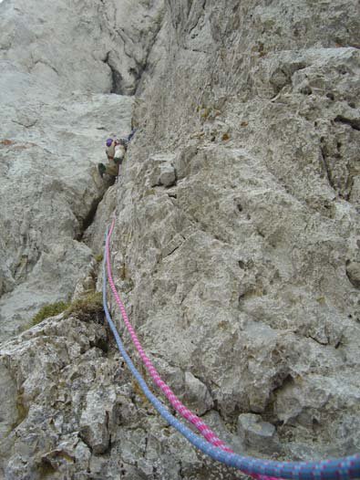 • Die N-Verschneidung (V+, alpin) gleich li. danach noch durchsteigen oder: