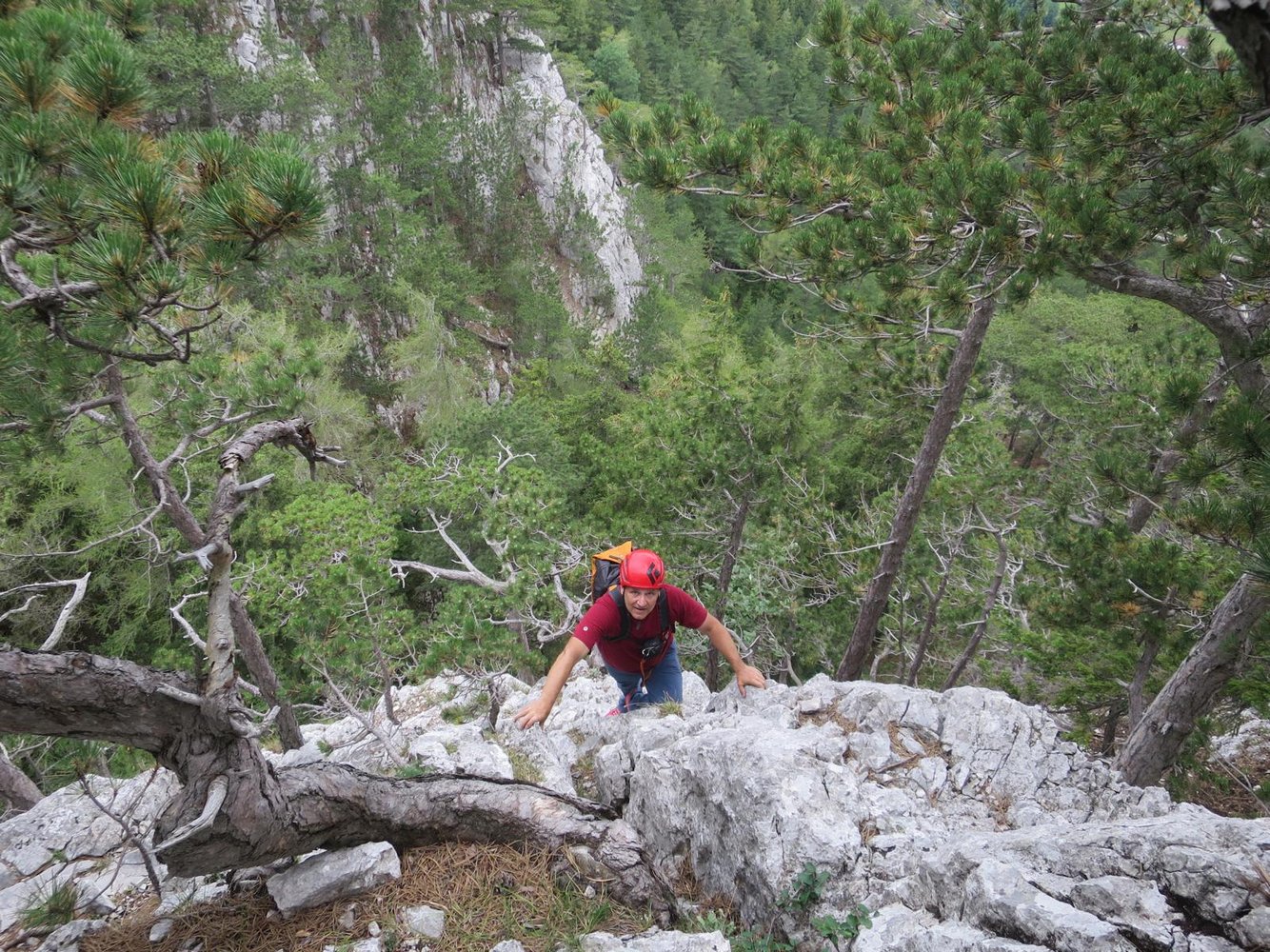 Die 3er-Passage oben am Klausenpfeiler kann links 2+ umgangen werden.