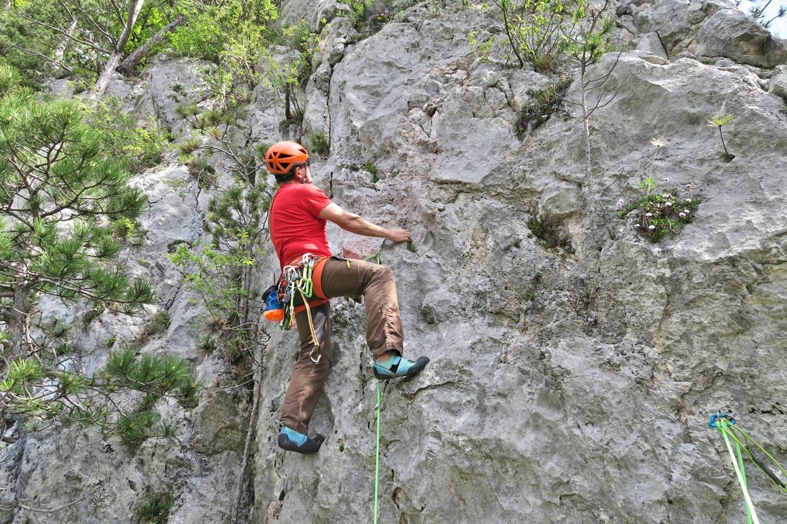Die Tour ist gut gesichert und eignet sich somit auch für den Einstieg in das Mehrseillängenklettern.