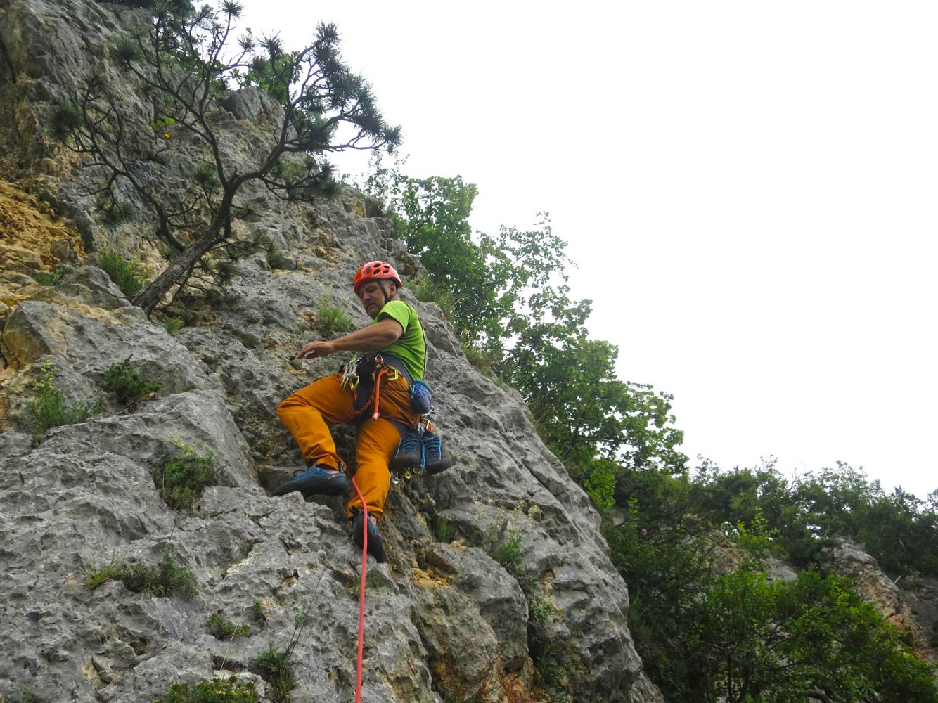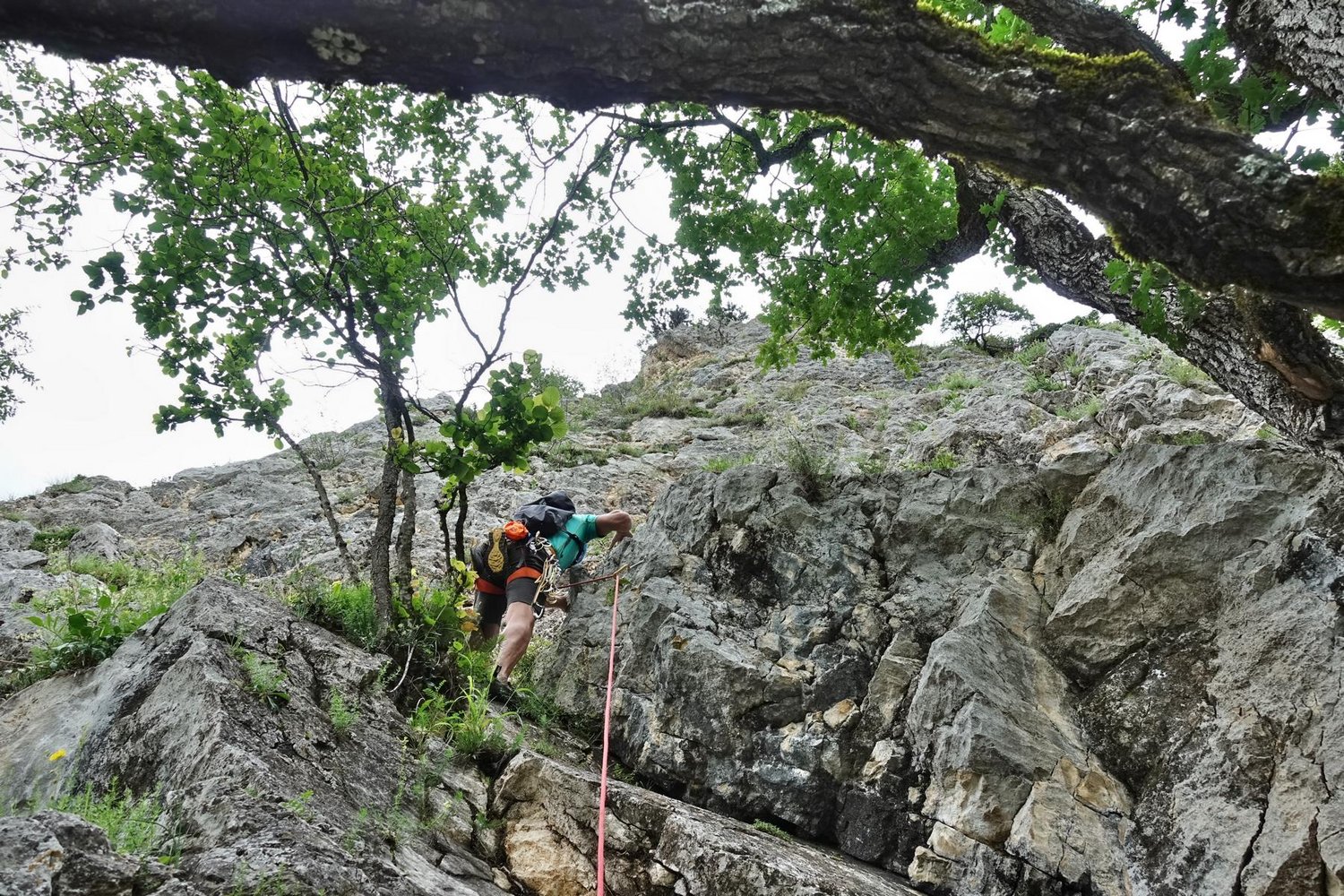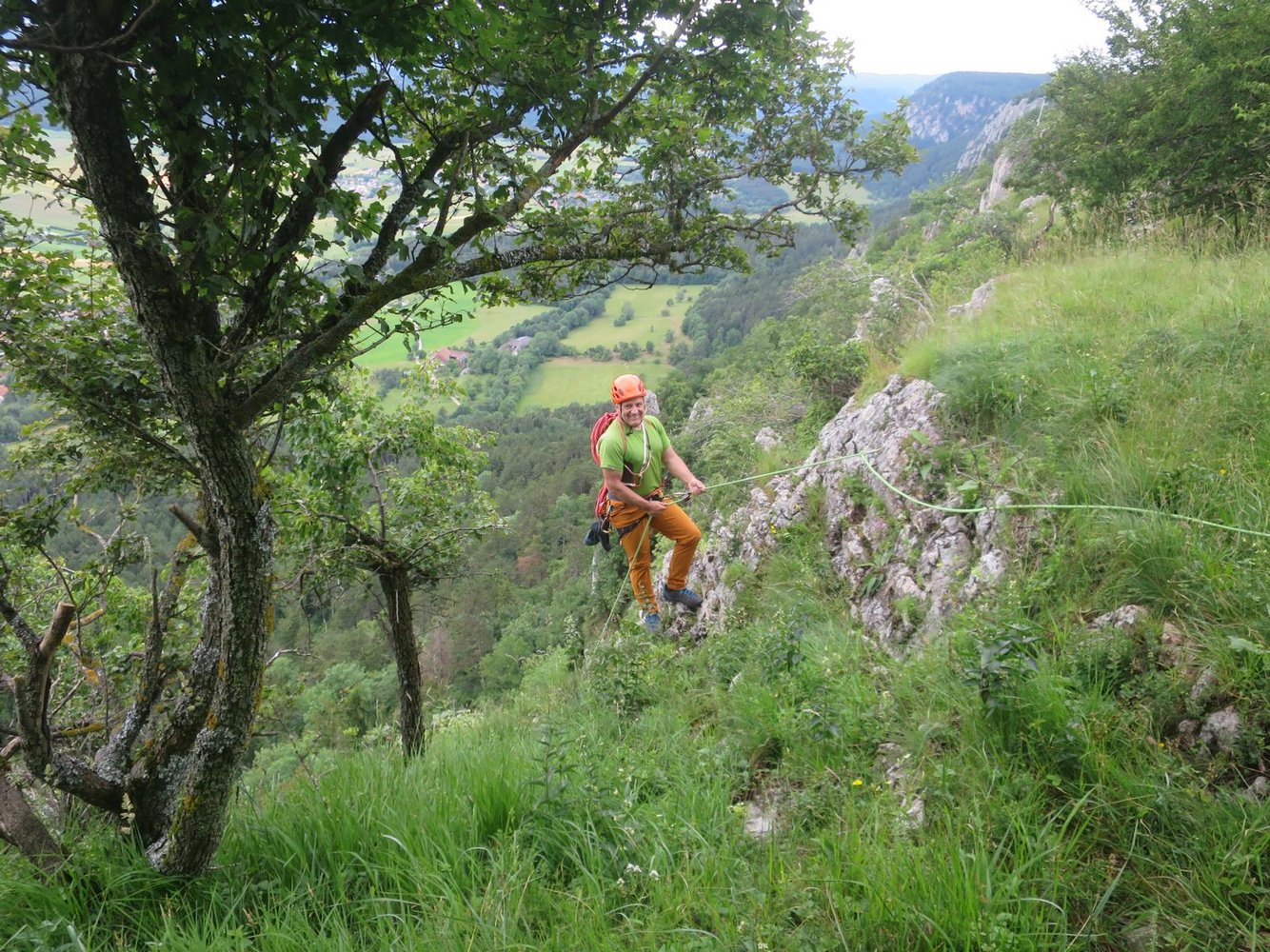 Kletterausrüstung + ein 60 Meter Seil zum Abseilen.