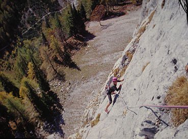 Von der Florlhütte etwa 5 min in Richtung Voisthalerhütte. Am Beginn des Kühbodens rechts vom Weg ab. Nach etwa 50m folgt man am besten einer Schuttriese. Zuletzt nach links zum Einstieg (ca. 25 min. von der Florlhütte...)