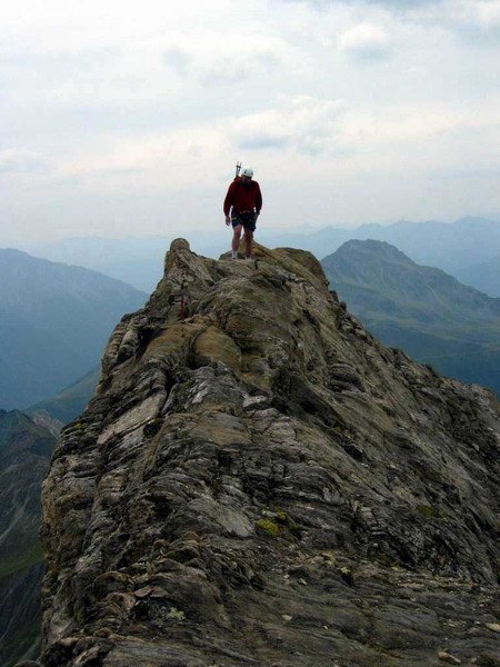 Relativ unbekannte und selten durchgeführte Gratkletterei auf einen 3000er. Die Tour hat vor allem landschaftliche Reize, da man vom Gipfel der Vorderen Kendlspitze herrliche Blicke auf Glockner-, Granatspitz, Schober- und Venedigergruppe hat - also quasi in inmitten der hohen Eisriesen steht. Aber auch die sehr leichte Kletterei ist nicht zu verachten, am sandigen, interessant bunt wirkenden Urgestein gewinnt man schnell an Höhe. Der Grat ist mit orangen Theniushaken abgesichert, da kann man das Seil ohne Expressschlinge hineinlegen und zügig weiterklettern. Die oberhalb des Bergsteigerdorfes Kals gelegene Tour ist auch eine gute Vorbereitungstour für den Stüdlgrat am Großglockner.