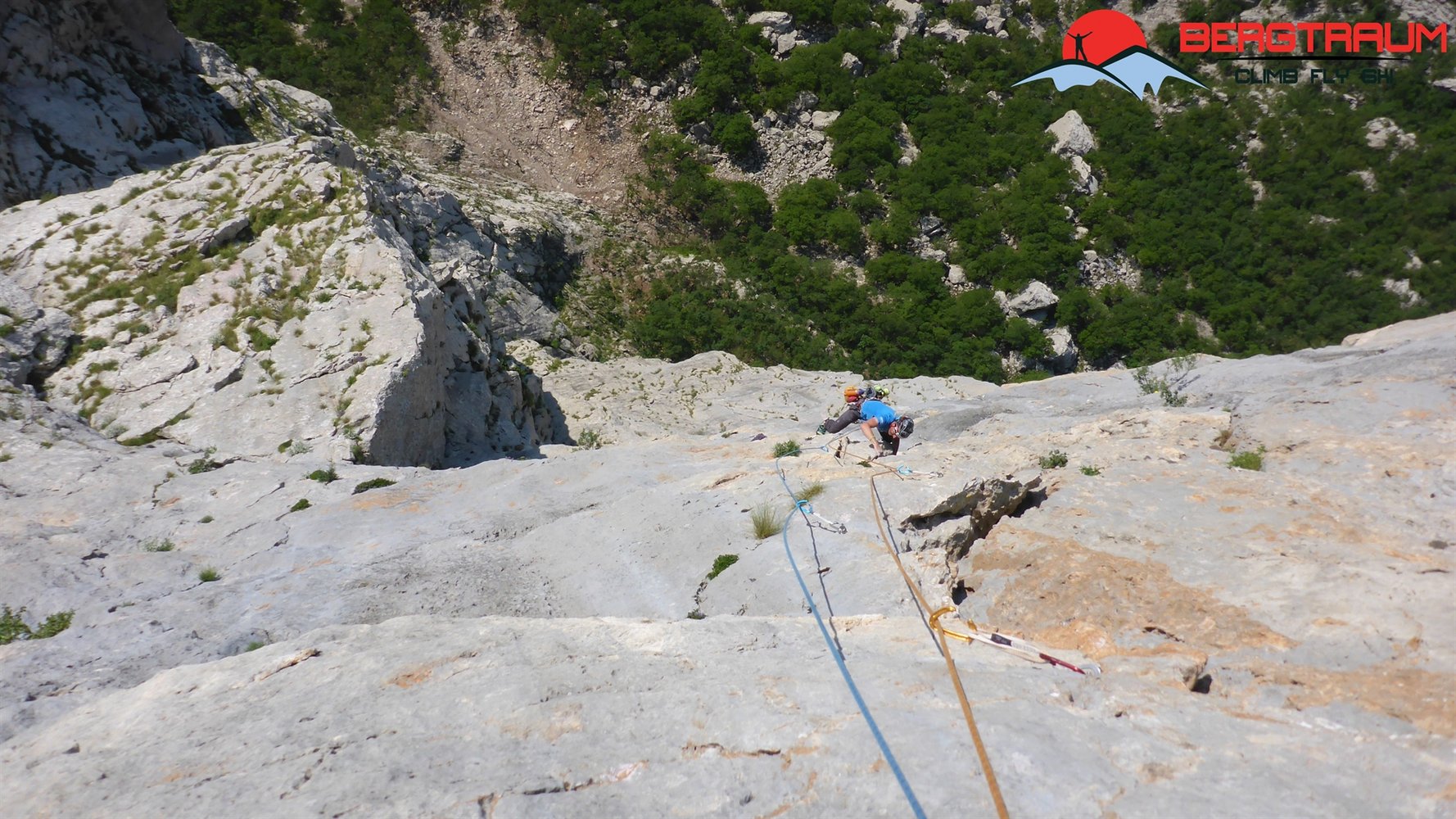 Die anspruchsvollste und gleichzeitig beste Kletterroute der Anića kuk – Trilogie (Velebitaški – Klin – Mosoraški). Die Route bietet sehr abwechlungsreiche Klettertei - primär an Rissen und Platten rechts der Riesenverschneidung. Oben wartet noch eine extrem ausgesetzte 7er Länge, die hinsichtlich Schönheit und Steilheit ihresgleichen sucht. Eine Hammer-Kletterei, die man unbedingt gemacht haben sollte!