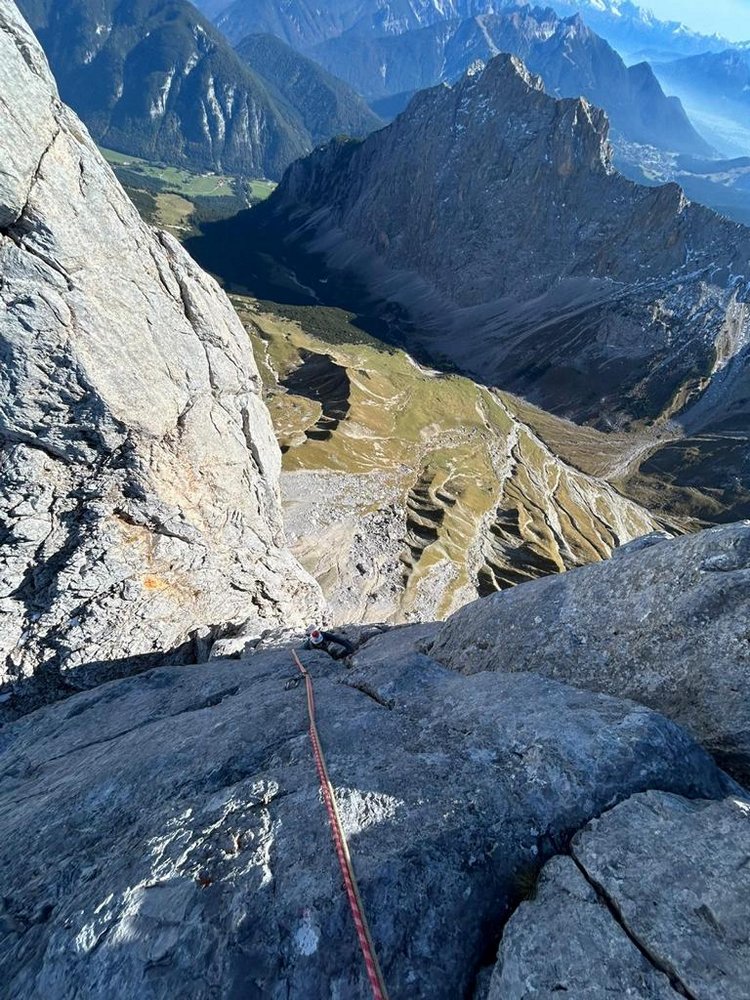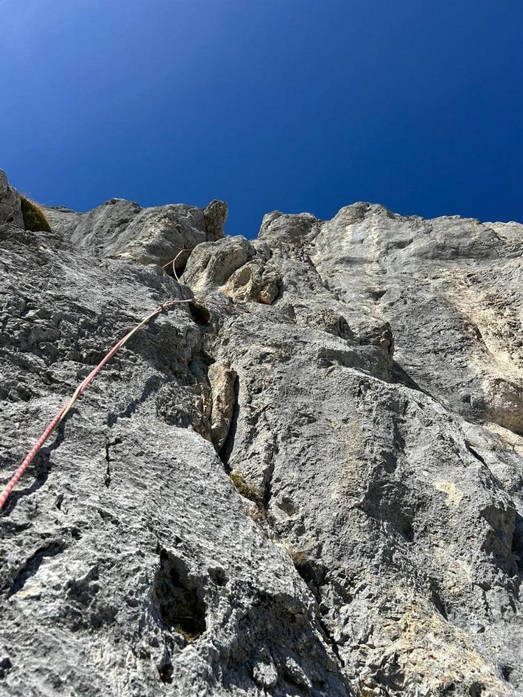 Eine wunderschöne Route im Schüsselkar. Im perfekten Fels sucht sich die Knapp - Köchler eine gut kletterbare Linie durch Platten, Risse und Verschneidungen. Die schweren Längen sind dank der Sanierung recht gut abgesichert, in den leichten Längen stecken wenig Haken. Für Kletterer, die sich im 7. Grad wohlfühlen, eine wirklich empfehlenswerte Route.