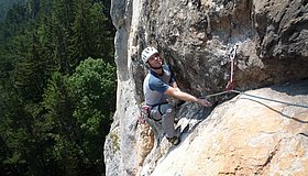 Einfachseil (oder 55 Doppelseil zum Abseilen), 14 Expr. und HELM nicht vergessen!