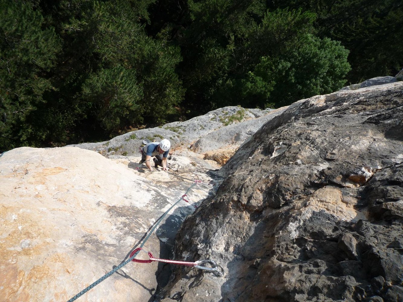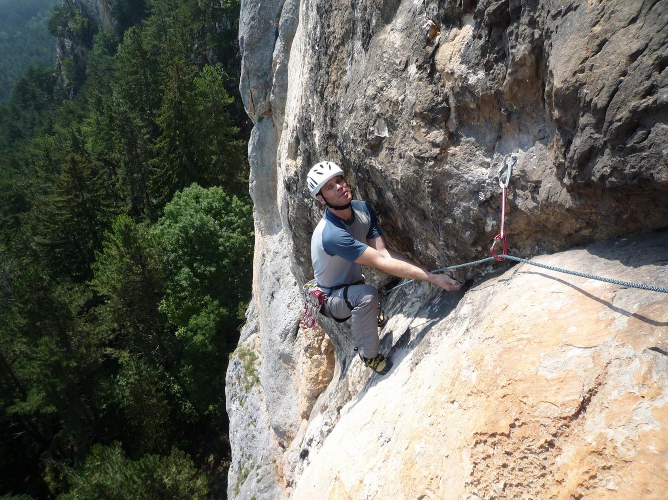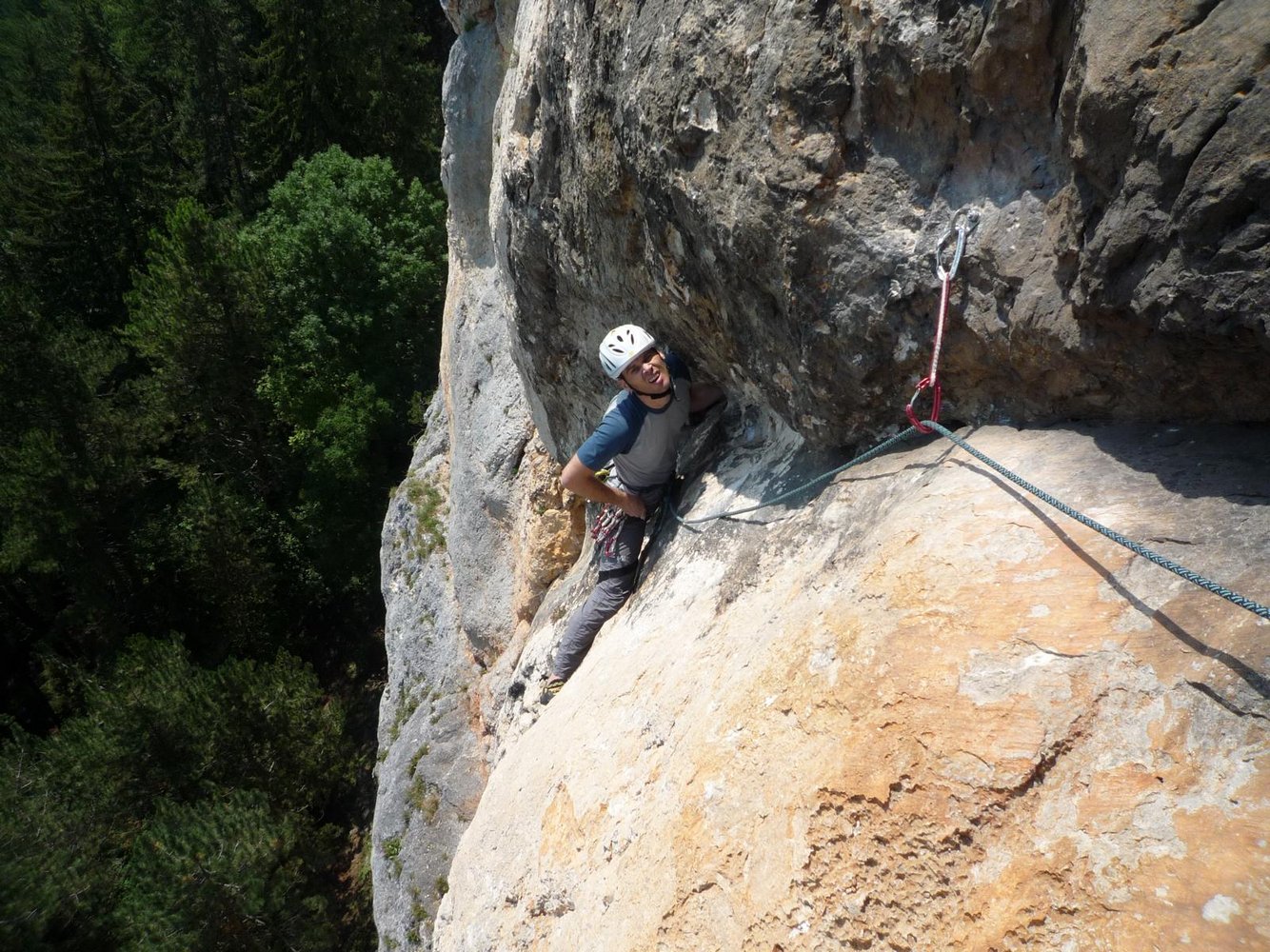 Einfachseil (oder 55 Doppelseil zum Abseilen), 14 Expr. und HELM nicht vergessen!