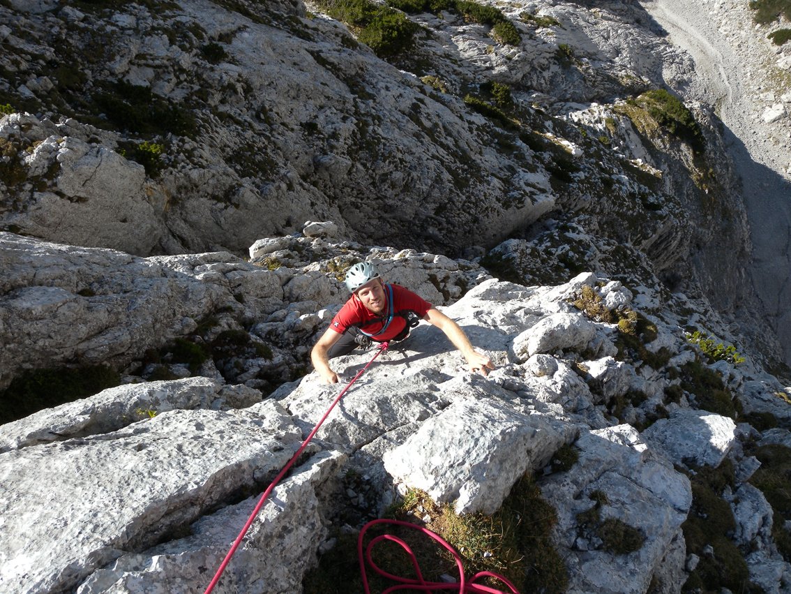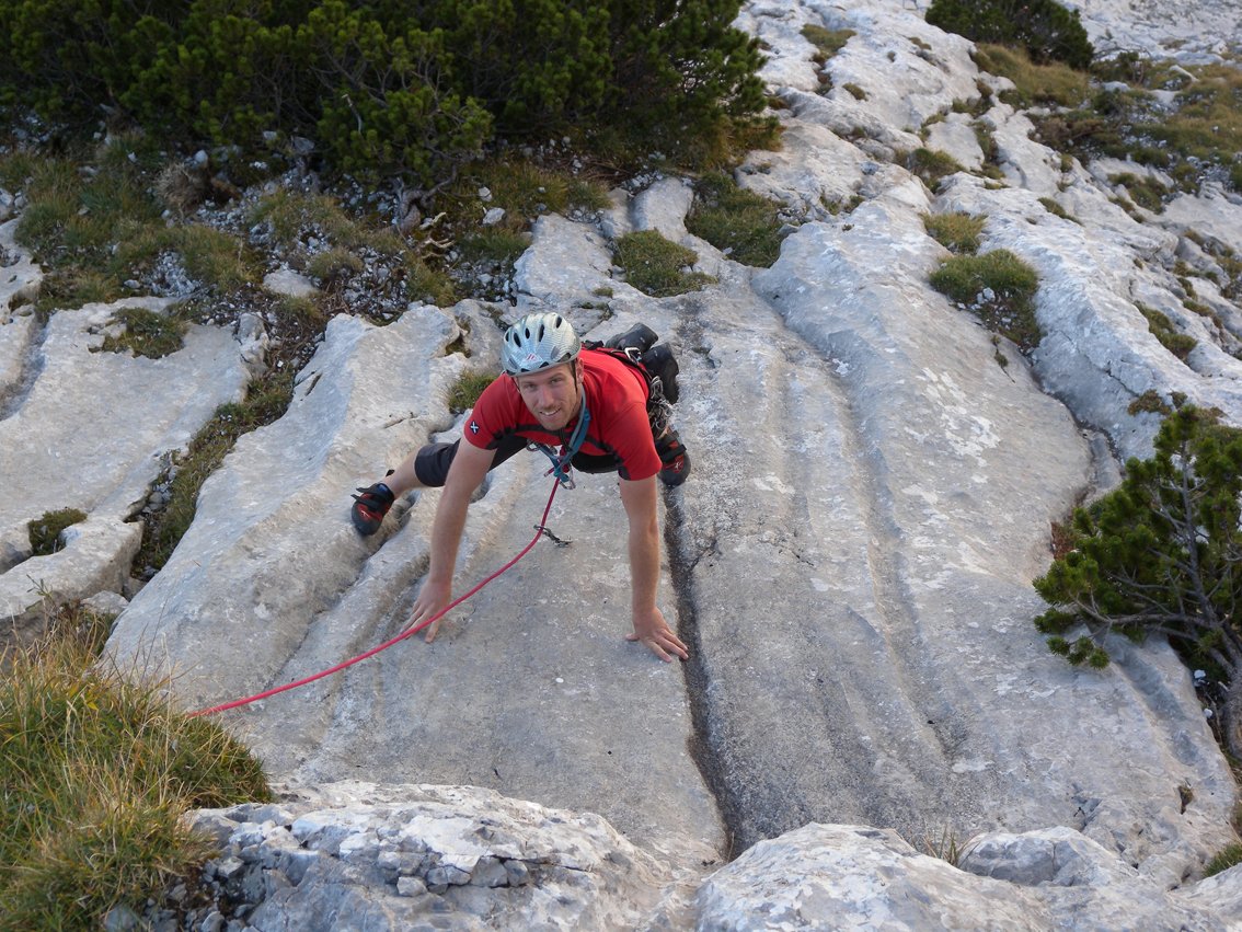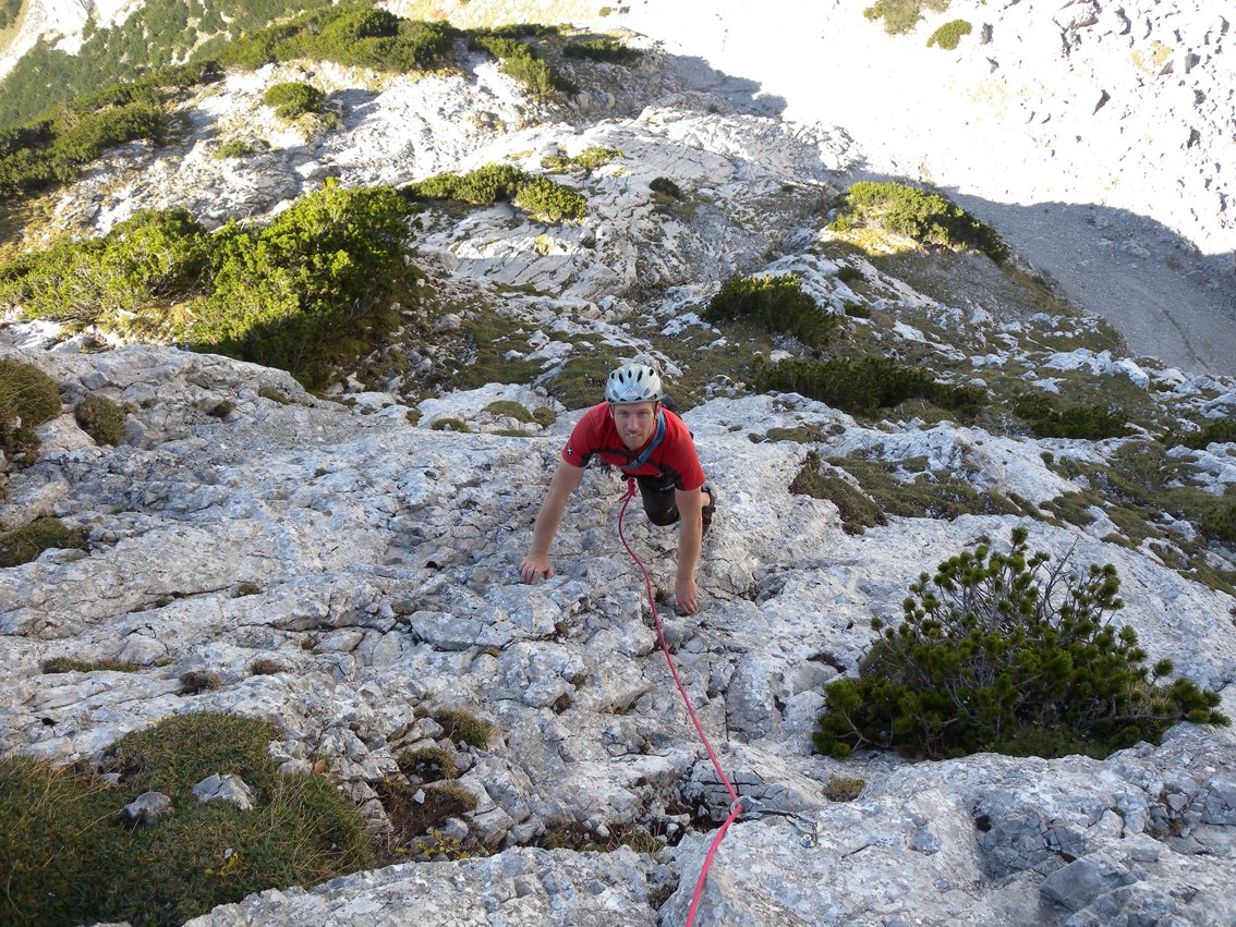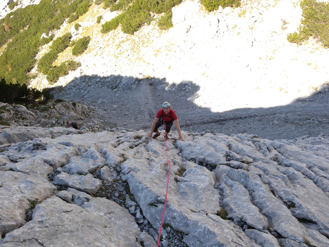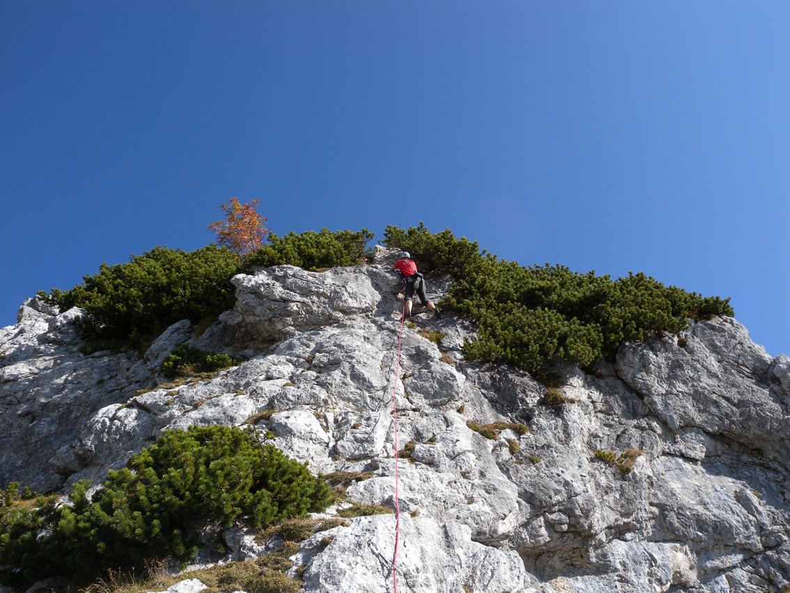 Mit Helm klettern, da Gämsen und Kletterer in der Tour Steinschlag auslösen können. VORSICHT, bei Schneelage im Frühjahr - der Abstieg befi ndet sich in einer gefährlichen Lawinenzone (Achtung, auch Nassschneelawinen!). Die Tour liegt erst am Nachmittag in der Sonne.