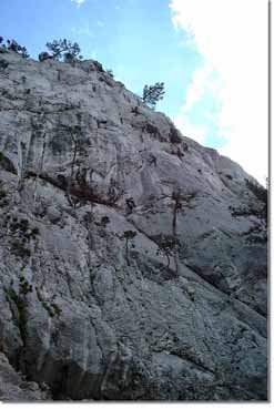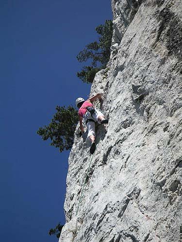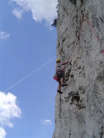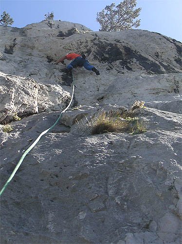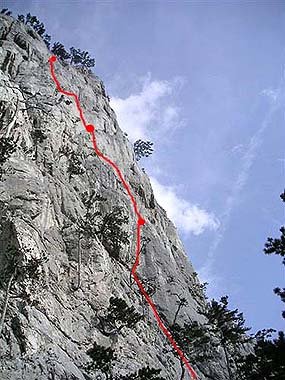 Diese Route war eine der ersten Sportklettereien im Grossofenbereich. Sie verläuft über schöne Platten, die zum Teil mit Tropflöchern übersaht sind. In drei knackigen Seillängen kommt man dem Ausstieg immer näher. Die letzte Seillänge kann durch die Variante Schrumpfkopf noch etwas verschärft werden. Insgesamt eine schöne Route, in der man aber den angegebenen Schwierigkeitsgrad beherrschen sollte. Vom Gesamteindruck ernster als die bei uns vorgestellten Routen Winterkönigin und Himmelsleiter.