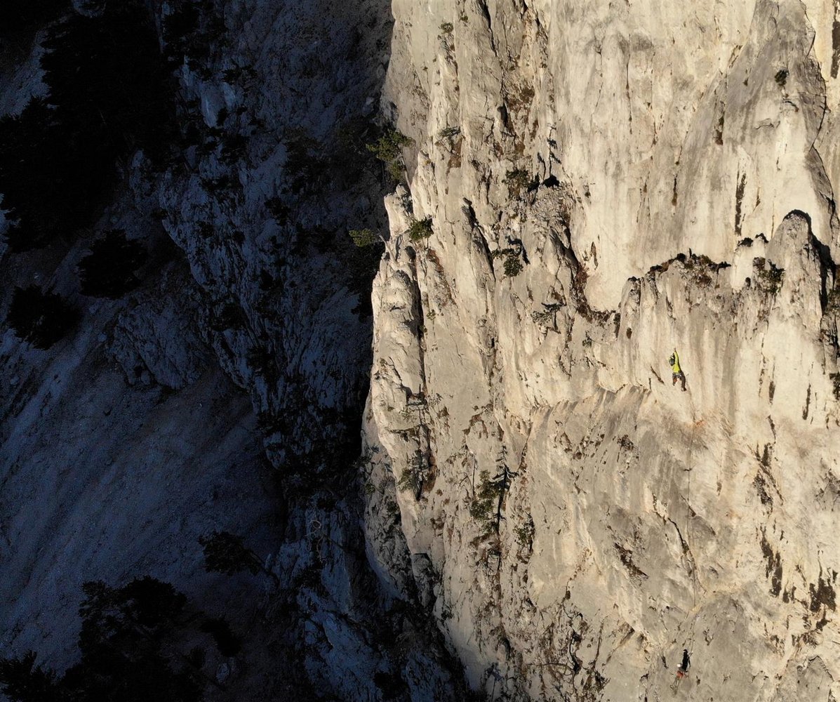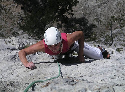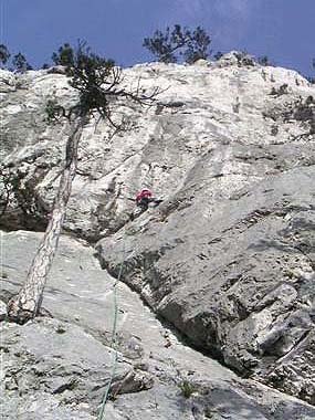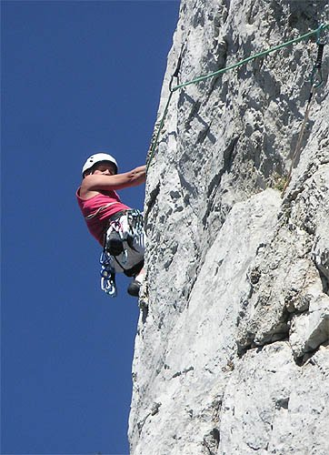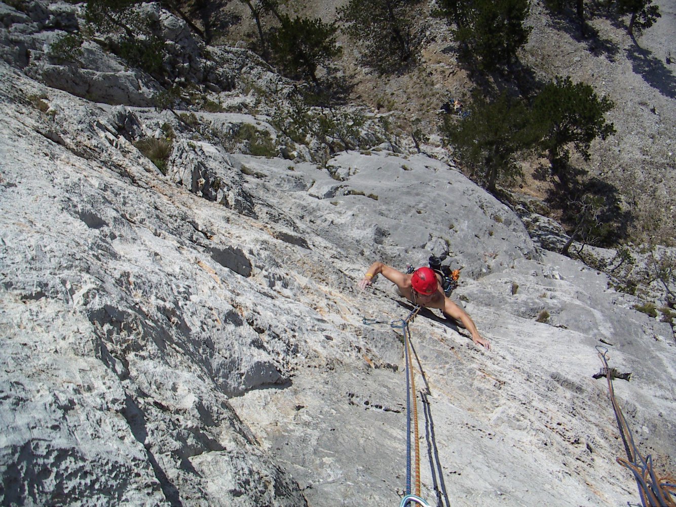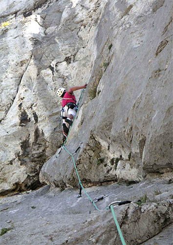 Die Route ist relativ gut mit Haken, Bohrhaken und Sanduhren gesichert, ABER nicht im Plaisierstil!