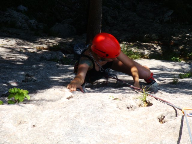 Schöne, südseitige und plattige Wandkletterei, die in 6 Seillängen auf den leicht geneigten Plattenfluchten neben der Abseilpiste emporzieht. Die Kletterei erfolgt oft an festen Henkeln und Sanduhren in den verschiedensten Größen und gehört zu den beliebtesten Touren im Grazer Bergland.
