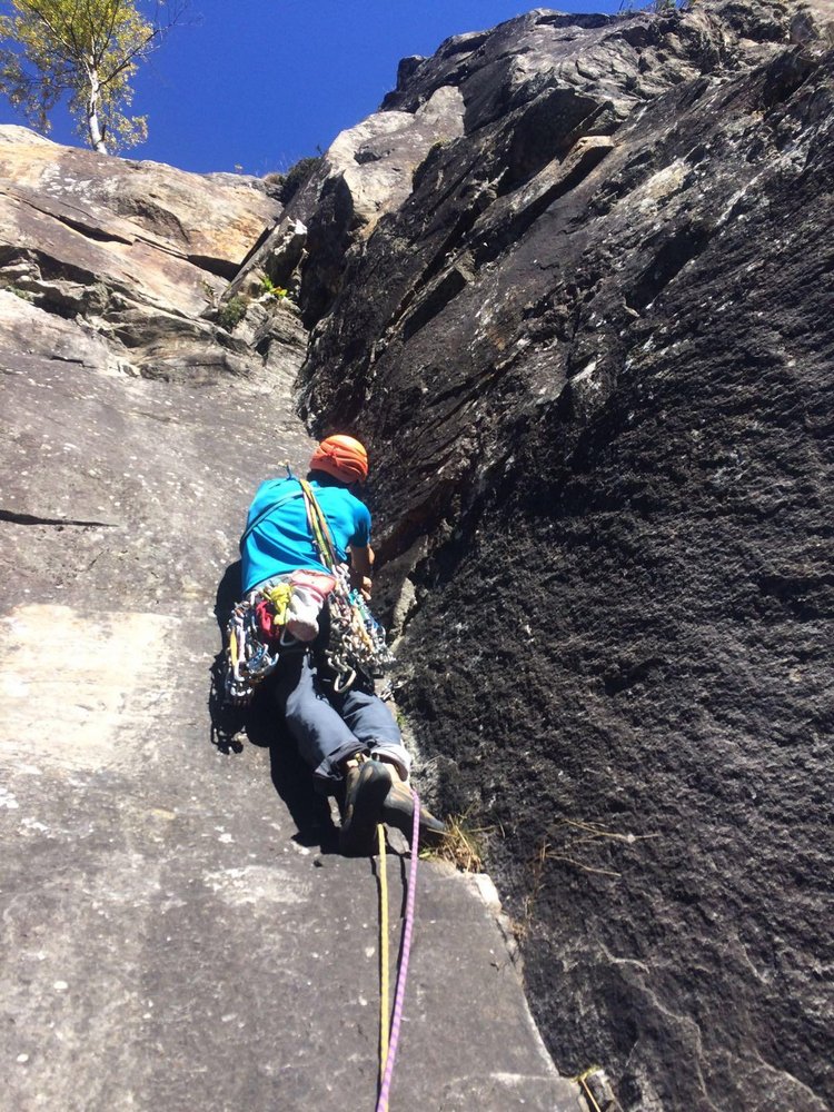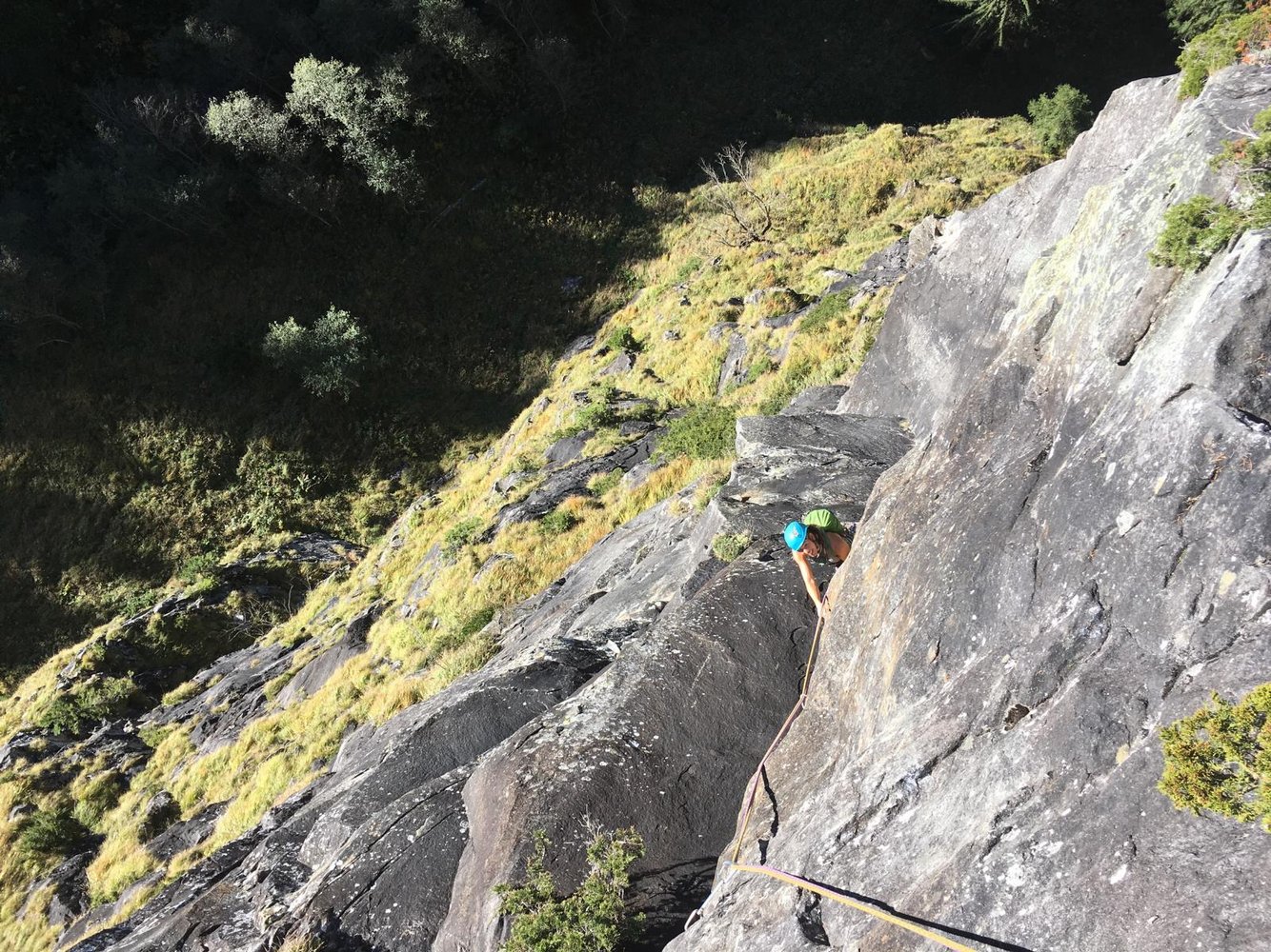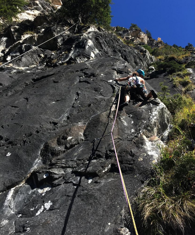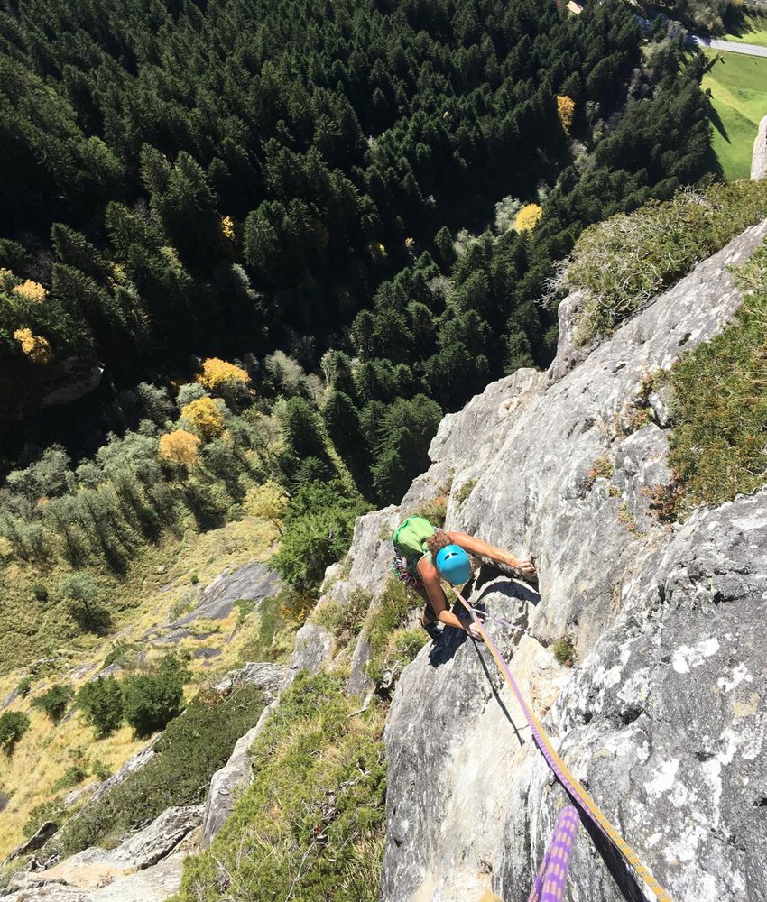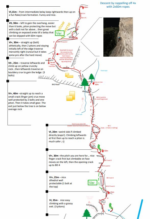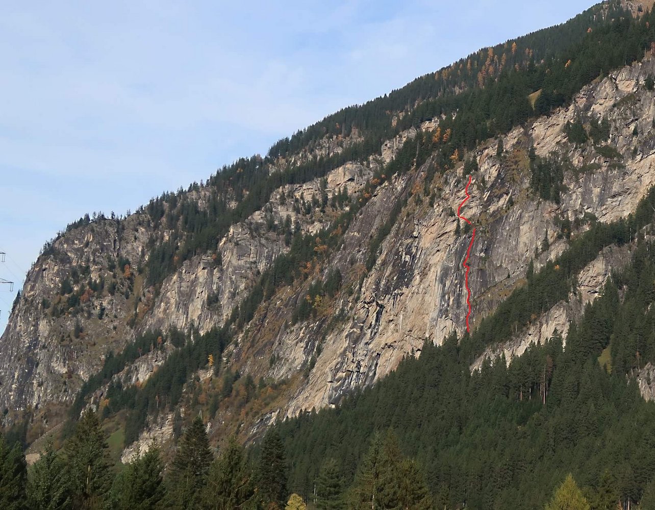 Eine alpine, sehr anspruchsvolle und stellenweise schwierig abzusicherende Tour, die ein sicheres Klettern im 7ten Grad verlangt und auch viel selbst abgesichert werden muss.