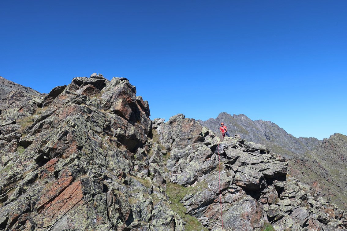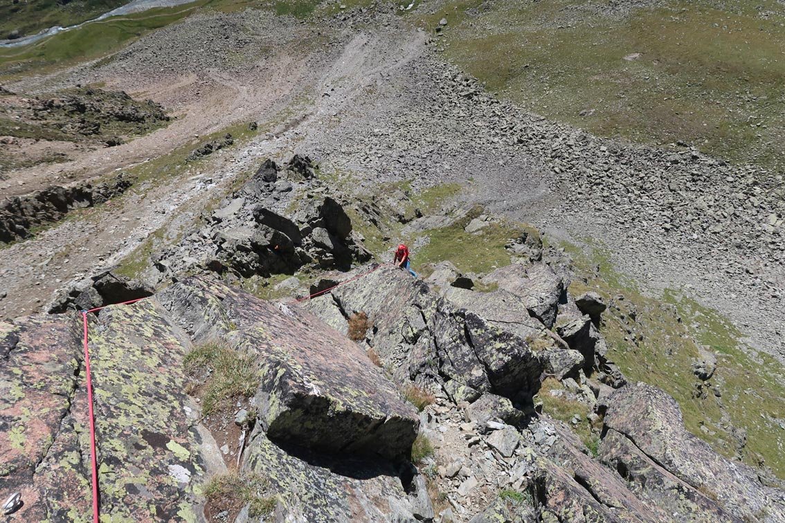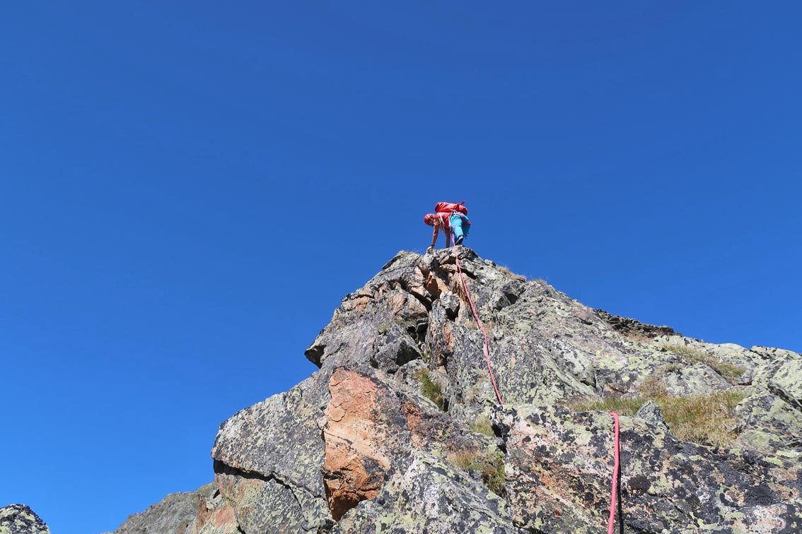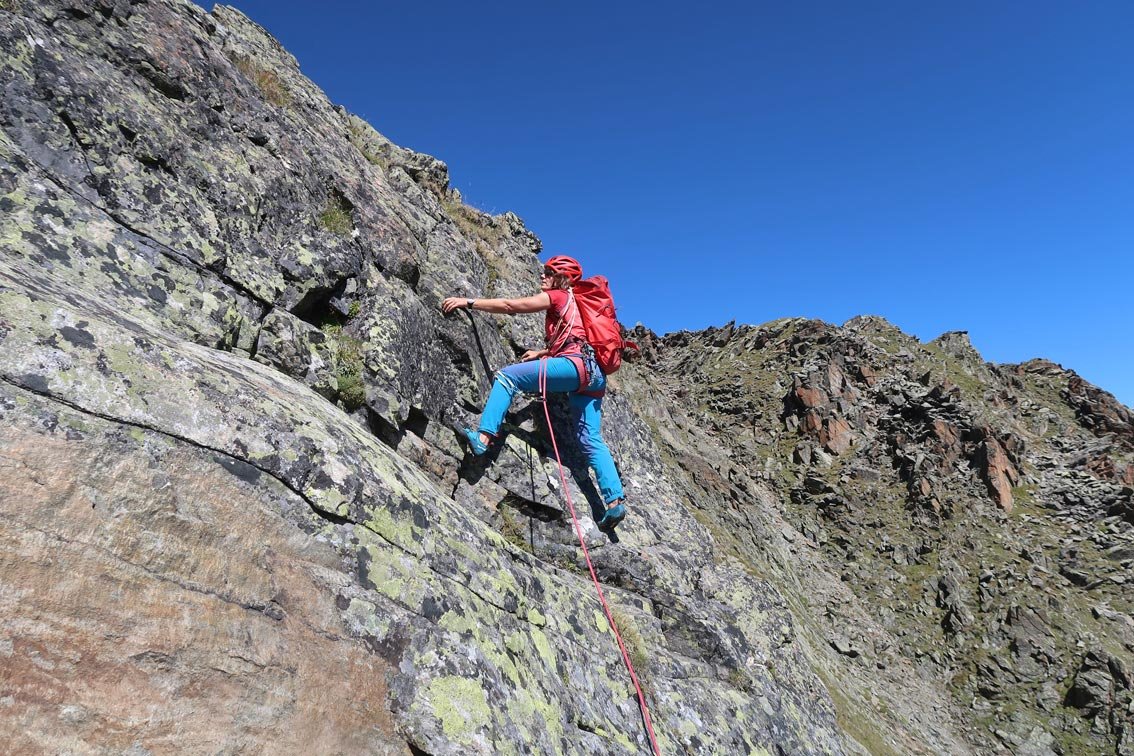 Wegen der Südostlage trocknet der Grat aber schnell ab. Man klettert immer schön in der Sonne (schattig ist in der Regel aber die nordseitige Abseilpiste).