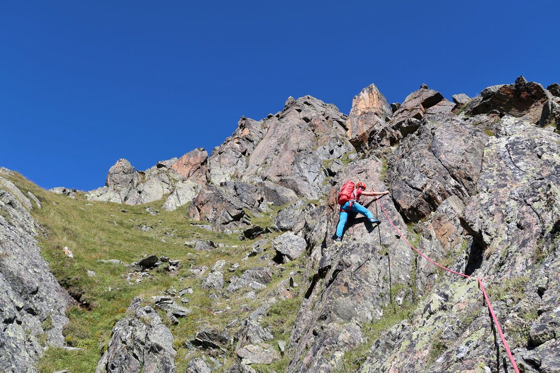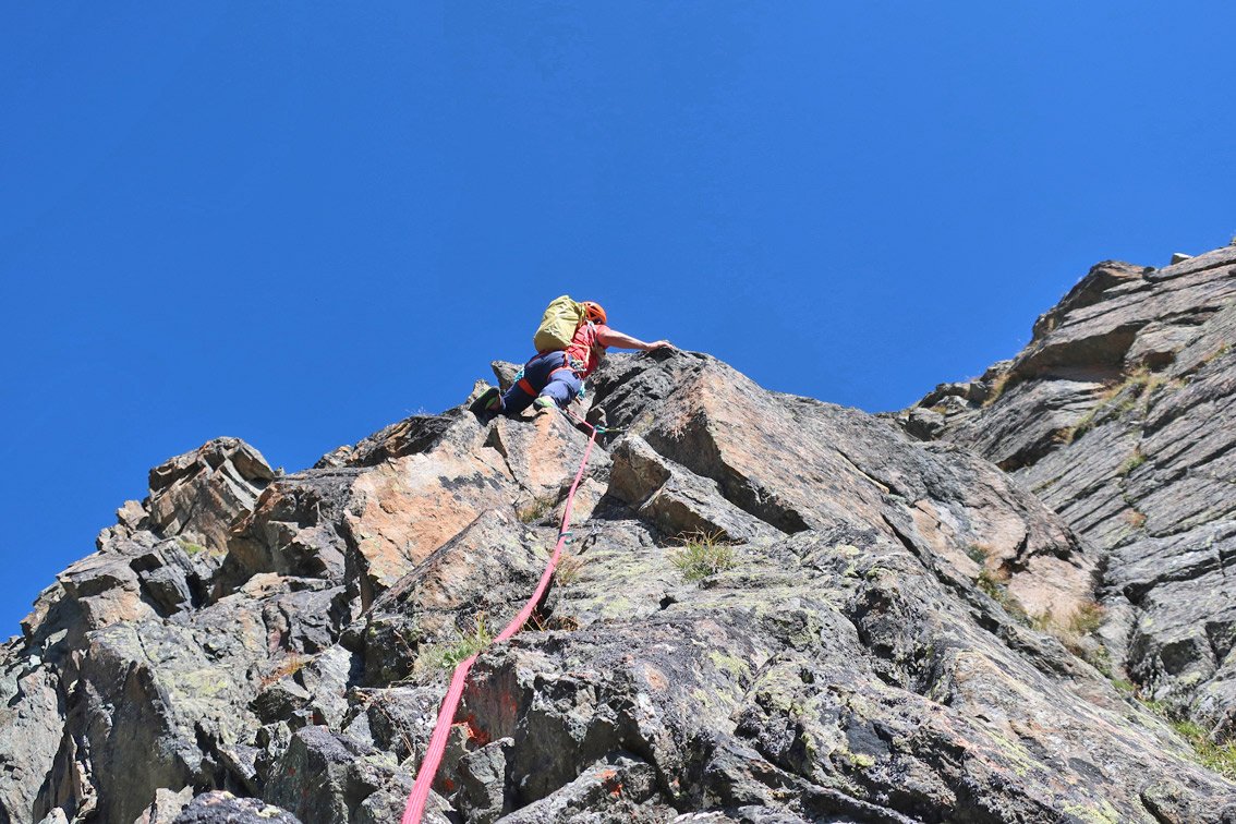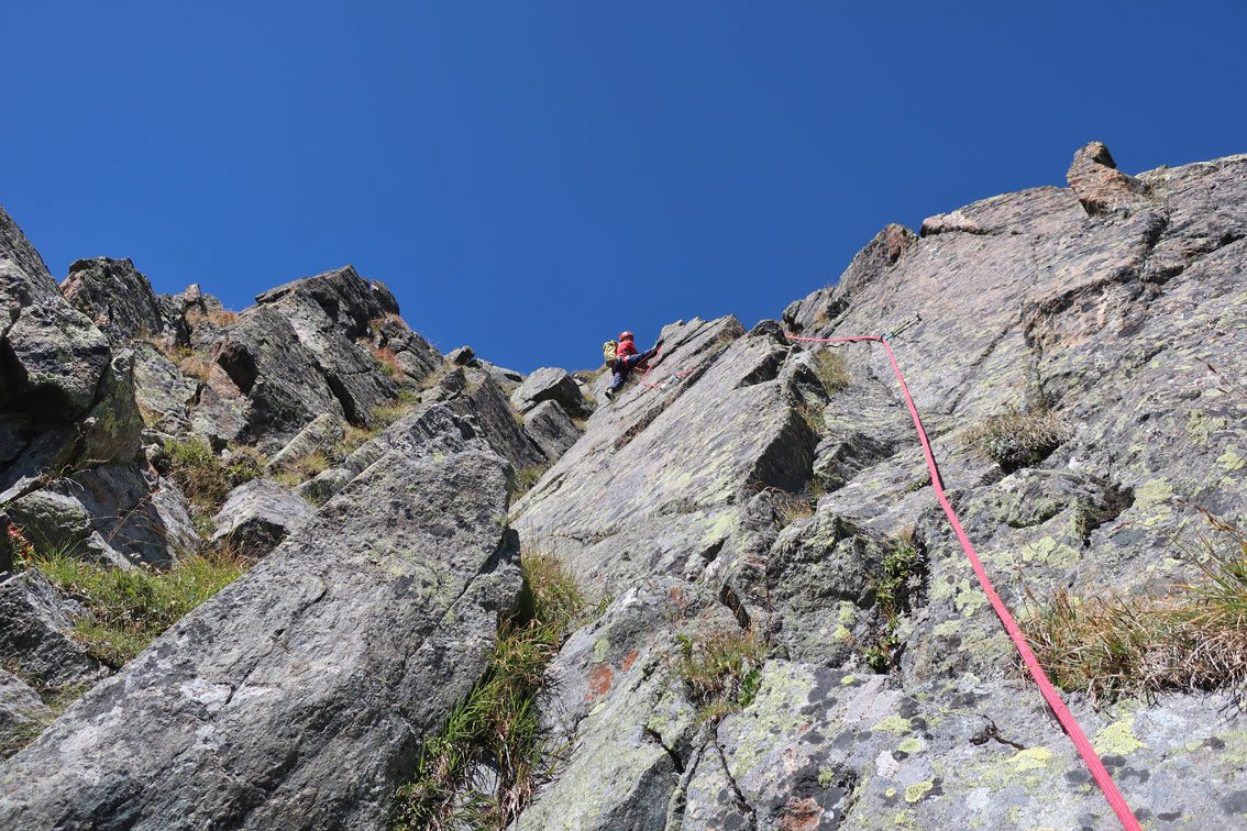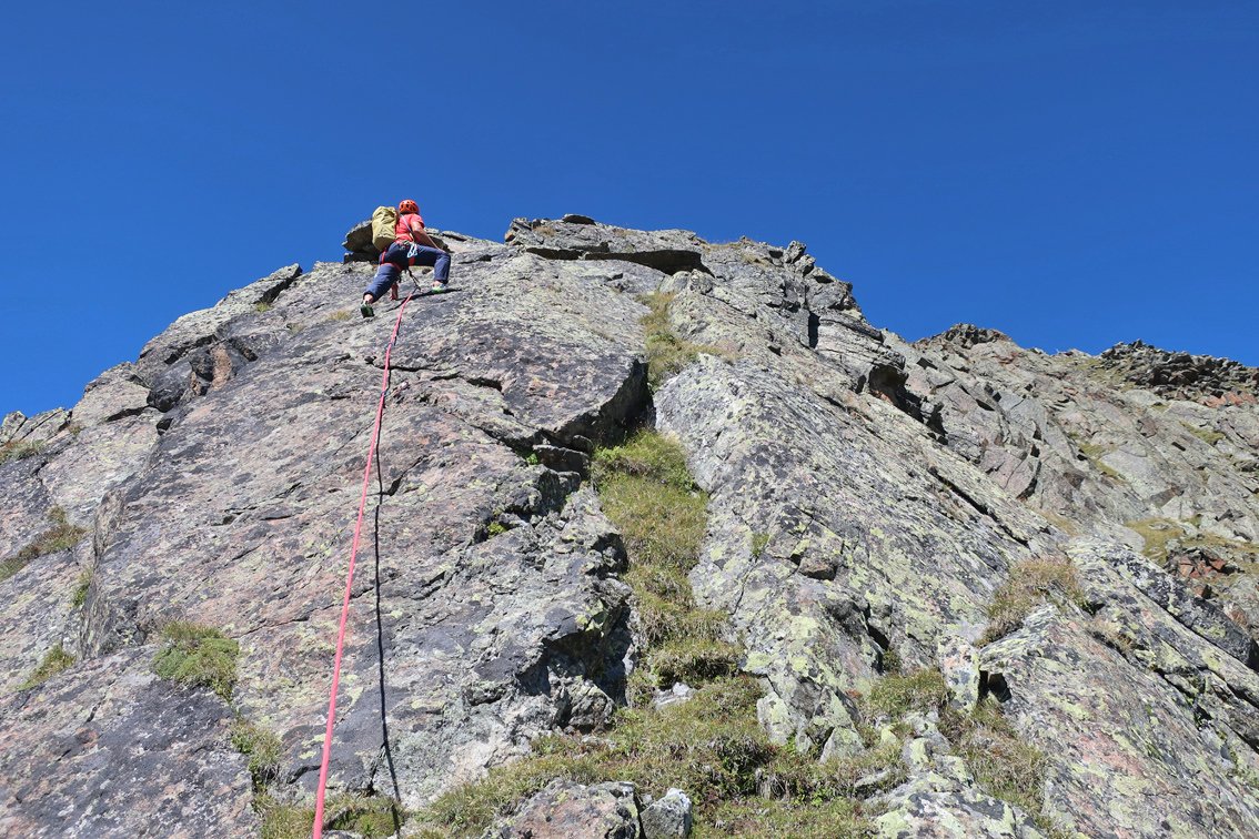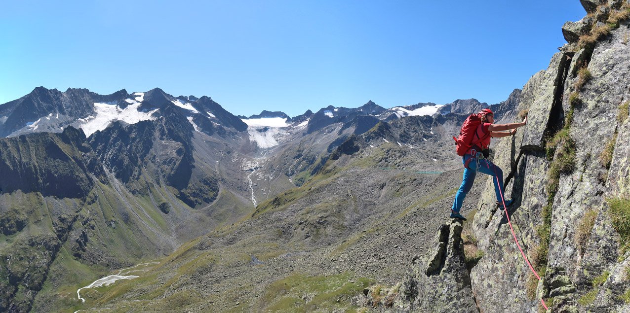 Perfekte Kletterei im 5ten Grad an feinstem Gneis/Granit, gute Bohrhakenabsicherung und fantastischer Gletscherblick – am Kreuzkamp oberhalb der Franz-Senn-Hütte werden diese tollen Parameter zur Realität. Die Tour hat das Zeug zum Hüttenklassiker in diesem Schwierigkeitsbereich, recht gut abgesichert, auch die Abseilpiste ist sehr gut eingerichtet. Da sich Zu- und Abstieg in Grenzen halten auch schön als Tagestour machbar.
