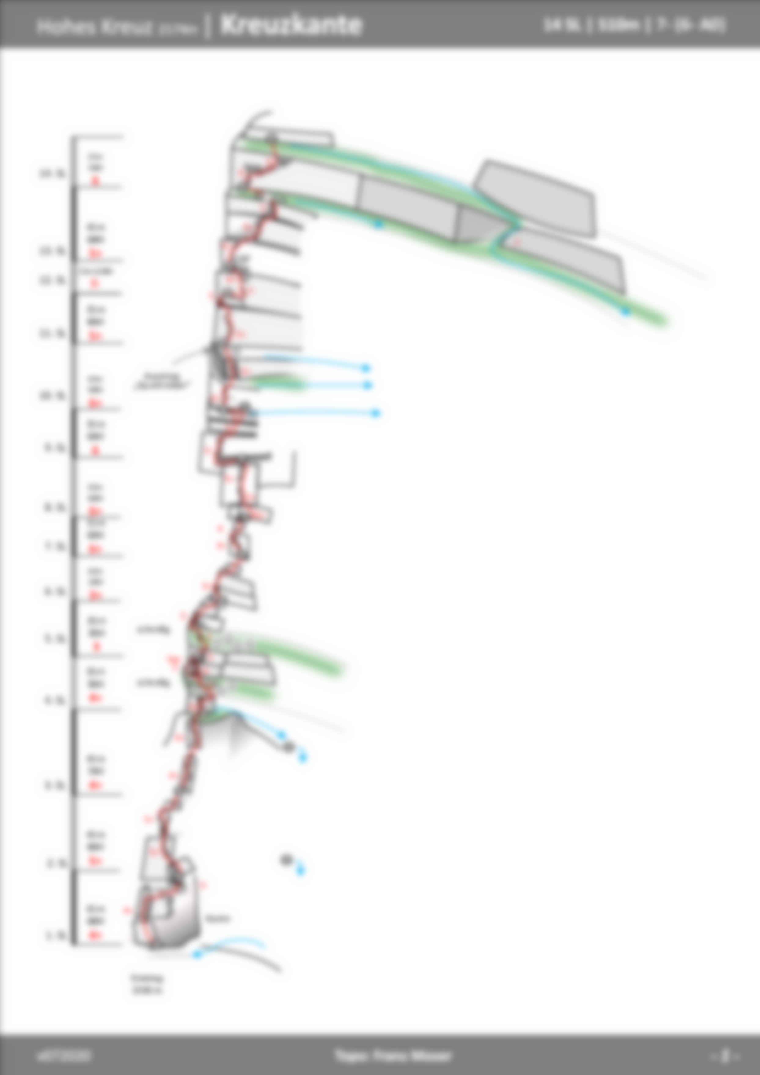Super Klassiker. Sehr schöne und steile, abwechslungsreiche Kletterei. Von Riss- und Verschneidungskletterei über Platten, Wandstellen und kleinere Überhänge bis hin zu einem ausgesetzten Quergang und einem Stemmkamin wird alles geboten!