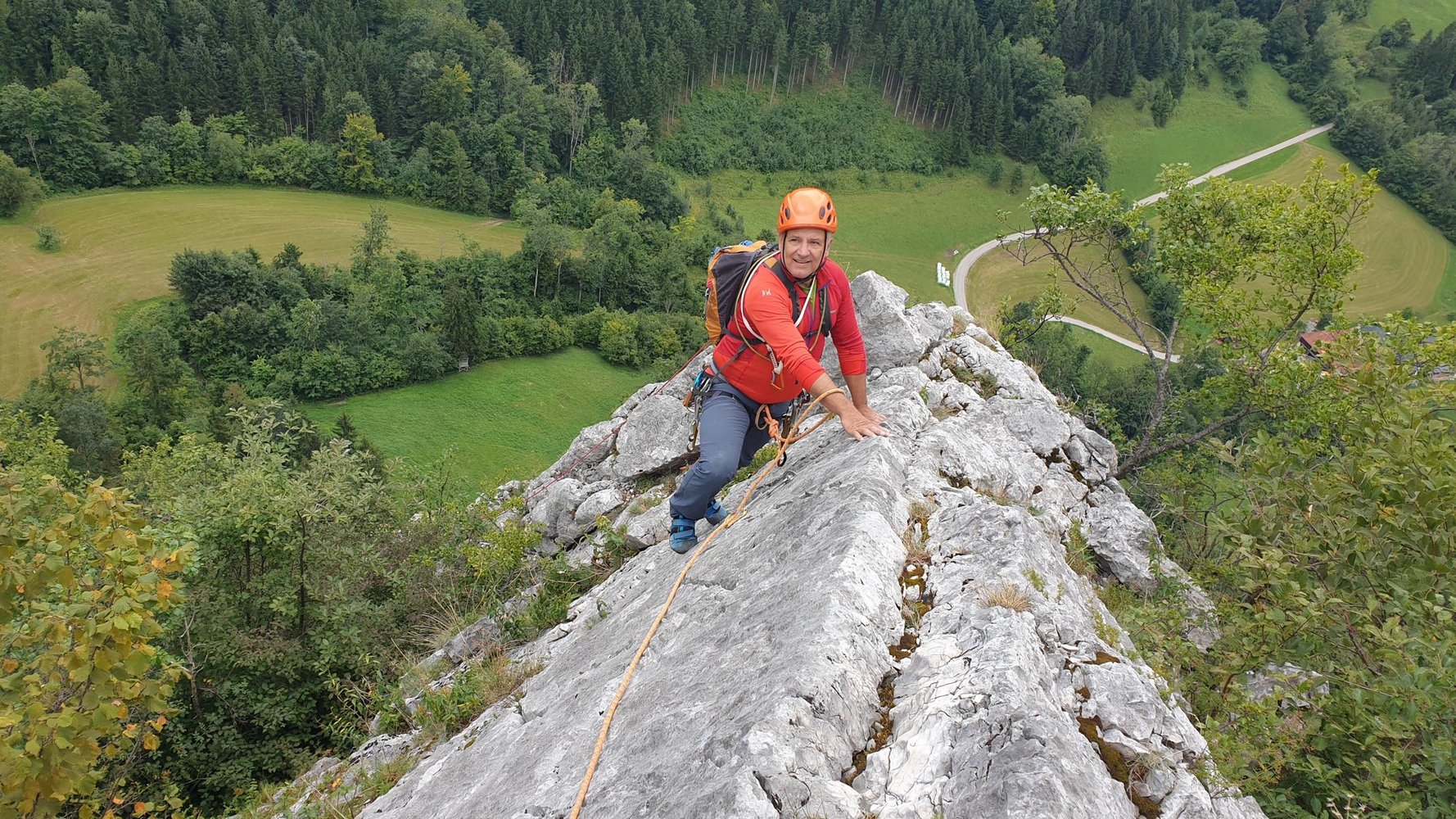 Nette Voralpen-Kletterei in überwiegend gutem Fels, die man dort nicht unbedingt erwarten würde. Überraschend fester Fels und teils luftige Kletterei über den Kreuzmauer Südwestgrat eingebettet in die liebliche Hügellandschaft des Ennstals. Zu empfehlen!