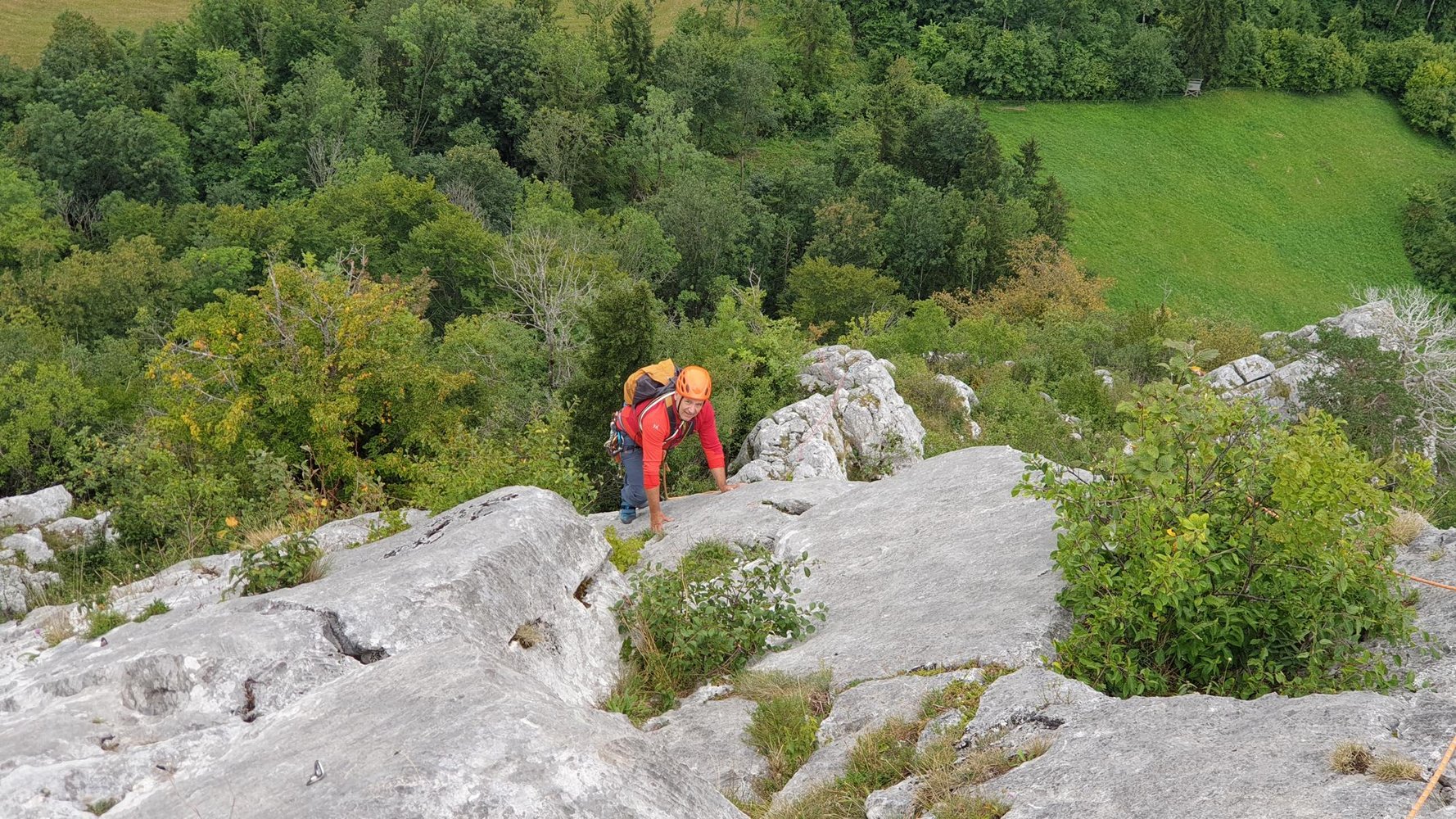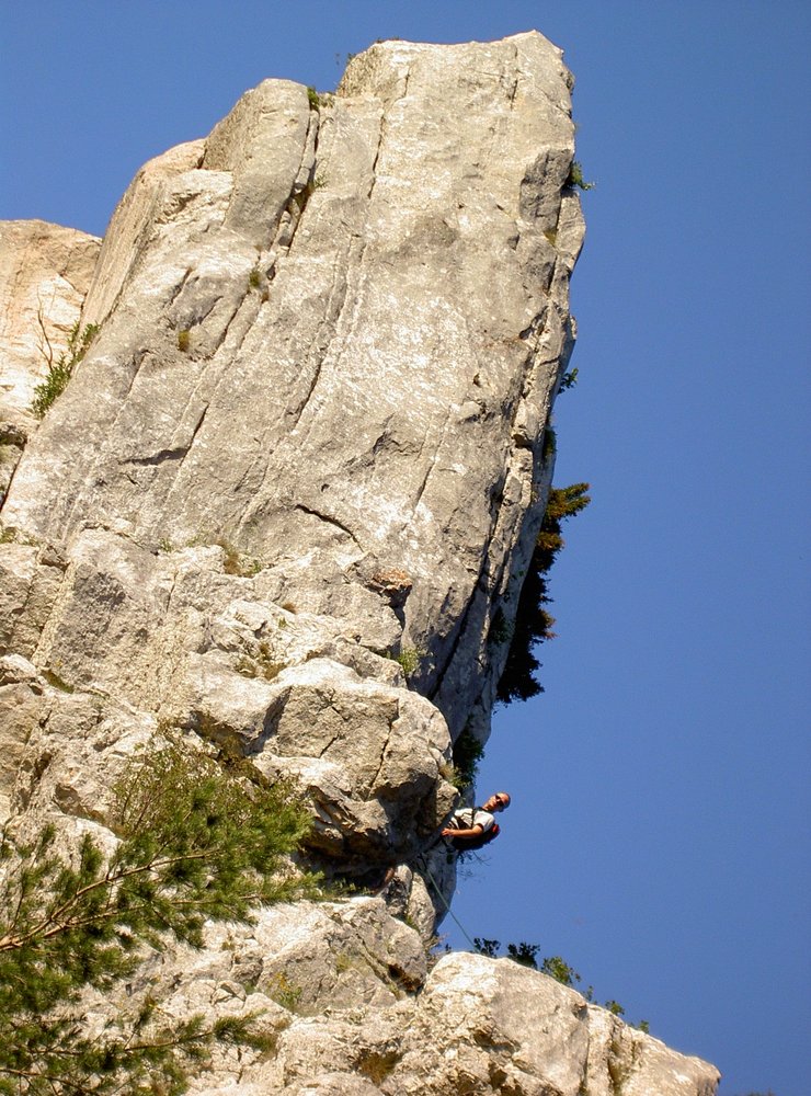 Achtung: 2 Meter links davon ist auch ein Stand mit 2 Bohrhaken. Diesen nicht vewenden.
