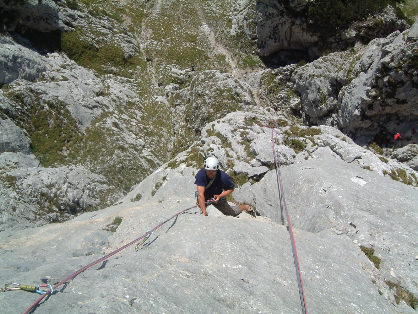 60 m Doppelseil, 12 Expressschlingen und Helm.