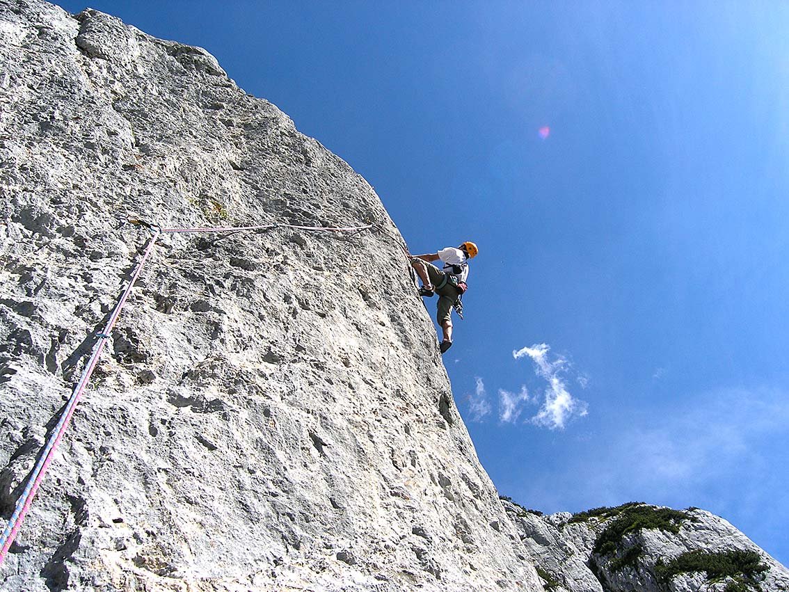 Sehr schöne Route, die - wie der Erstbegeher anmerkte: "das Zeug zum Klassiker hat", ist einer geworden. Unten an einer steilen Wand hinauf zur Schlüssellänge (diese kann auch gut technisch geklettert werden). Die letzten beiden Seillängen sind fantastisch steile Kletterei in allerbestem Fels! Man kann die Tour gut mit der Blindschleich kombinieren, tolle Klettertag mit vielen schönen Seillängen.