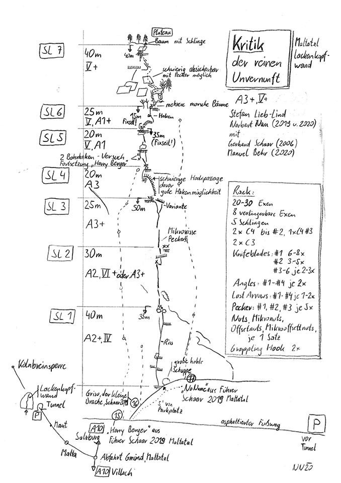 Im Mai 2020 haben Stefan Lieb-Lind und Norbert Nau ein vor 15 Jahren begonnenes Kletterprojekt fertiggebracht: die "Kritik der reinen Unvernunft" (in Anlehnung an das fast gleichnamige Werk von Immanuel Kant) an der Lackenkopfwand im Maltatal.